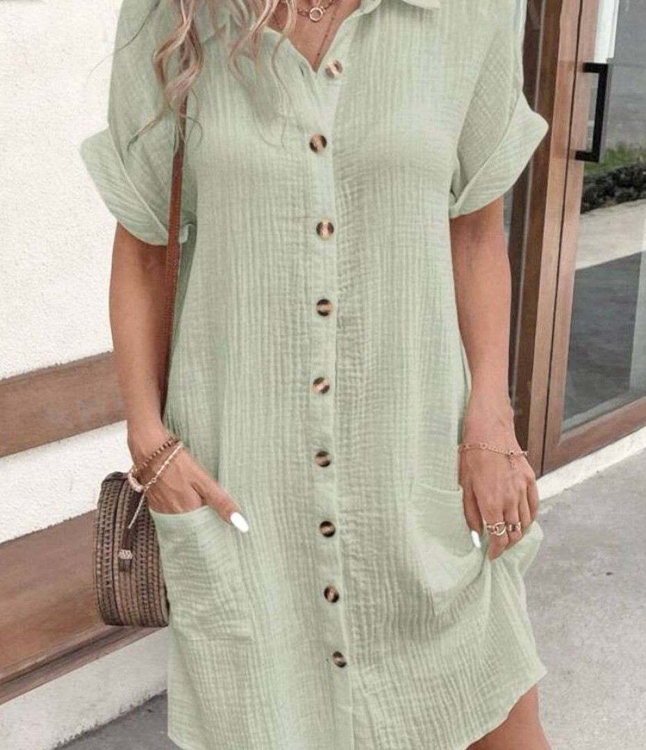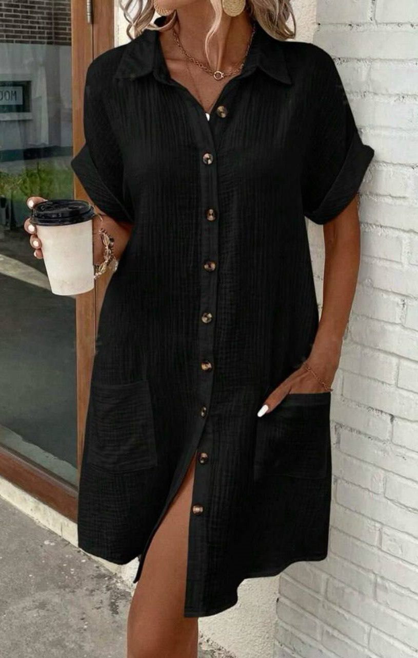 - Платье с пуговицами и накладными карманами