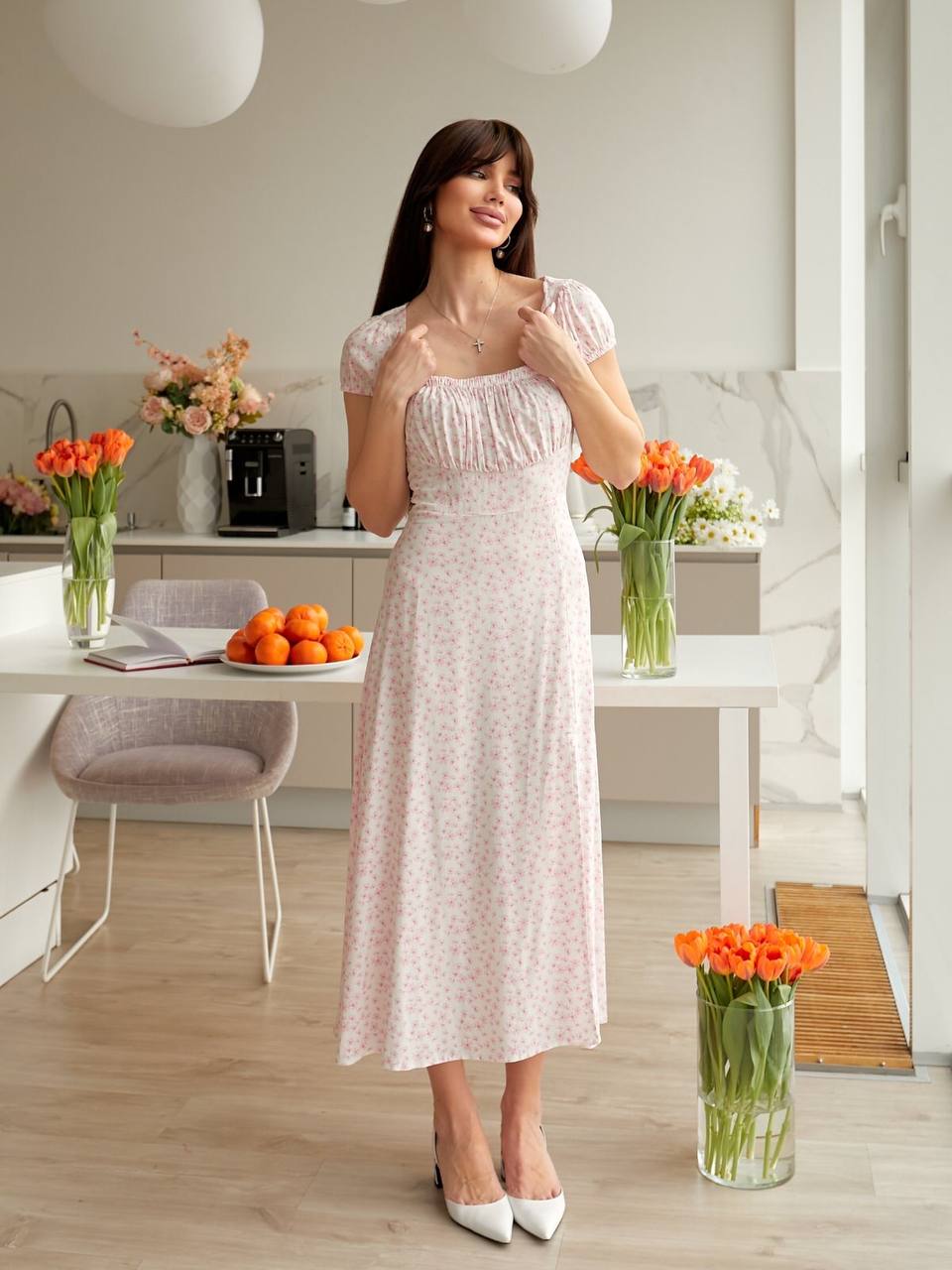 - Платье с разрезом по ножке