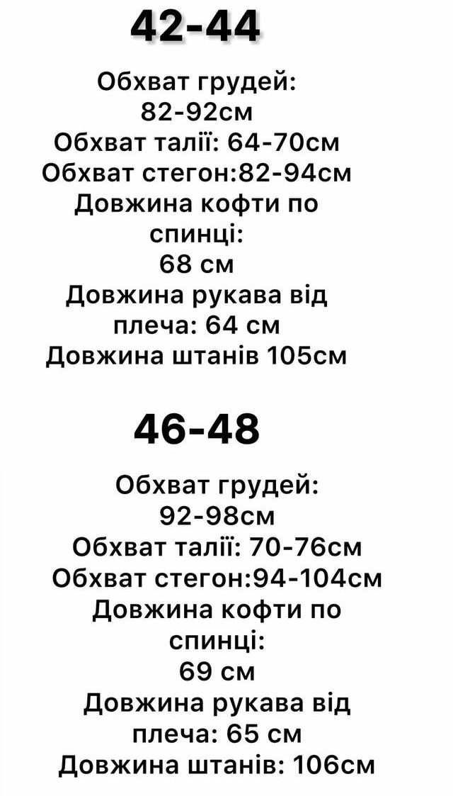 | 2XL | 44 | 50 | 98-102 | 78-82 | 106-110 |