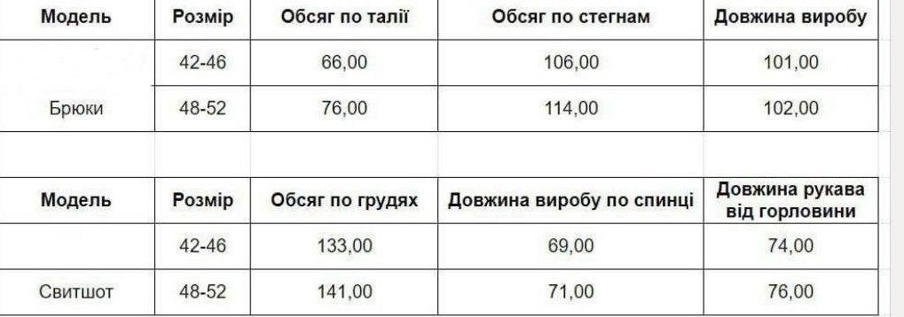 | XL | 42 | 48 | 94-98 | 74-78 | 102-106 |