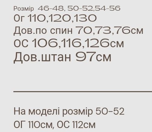 - Размеры: 46-48, 50-52, 54-56