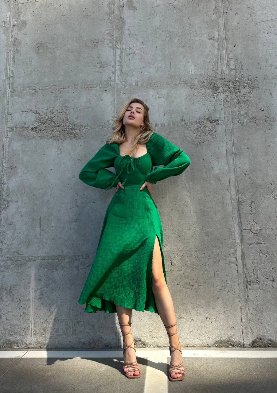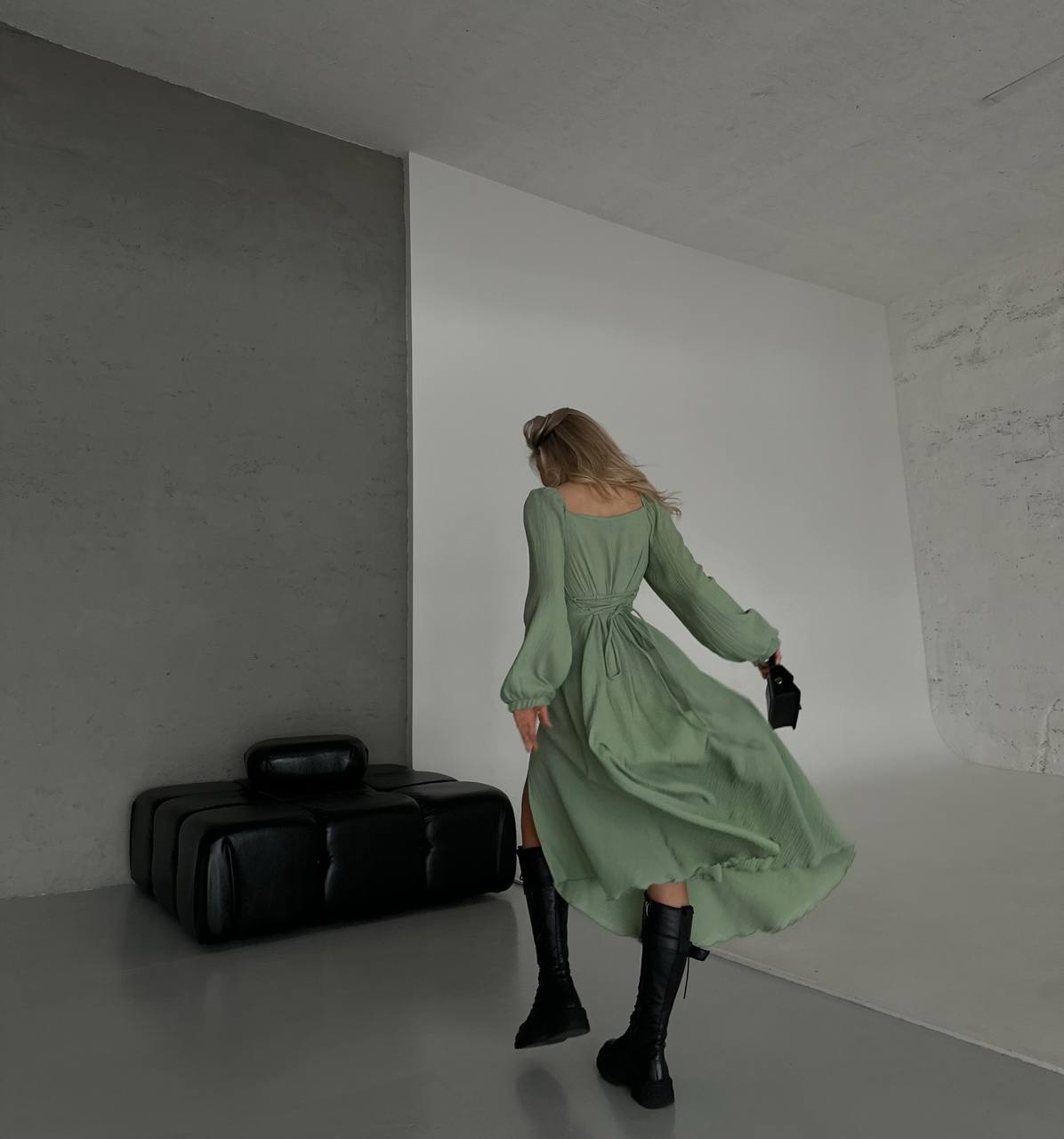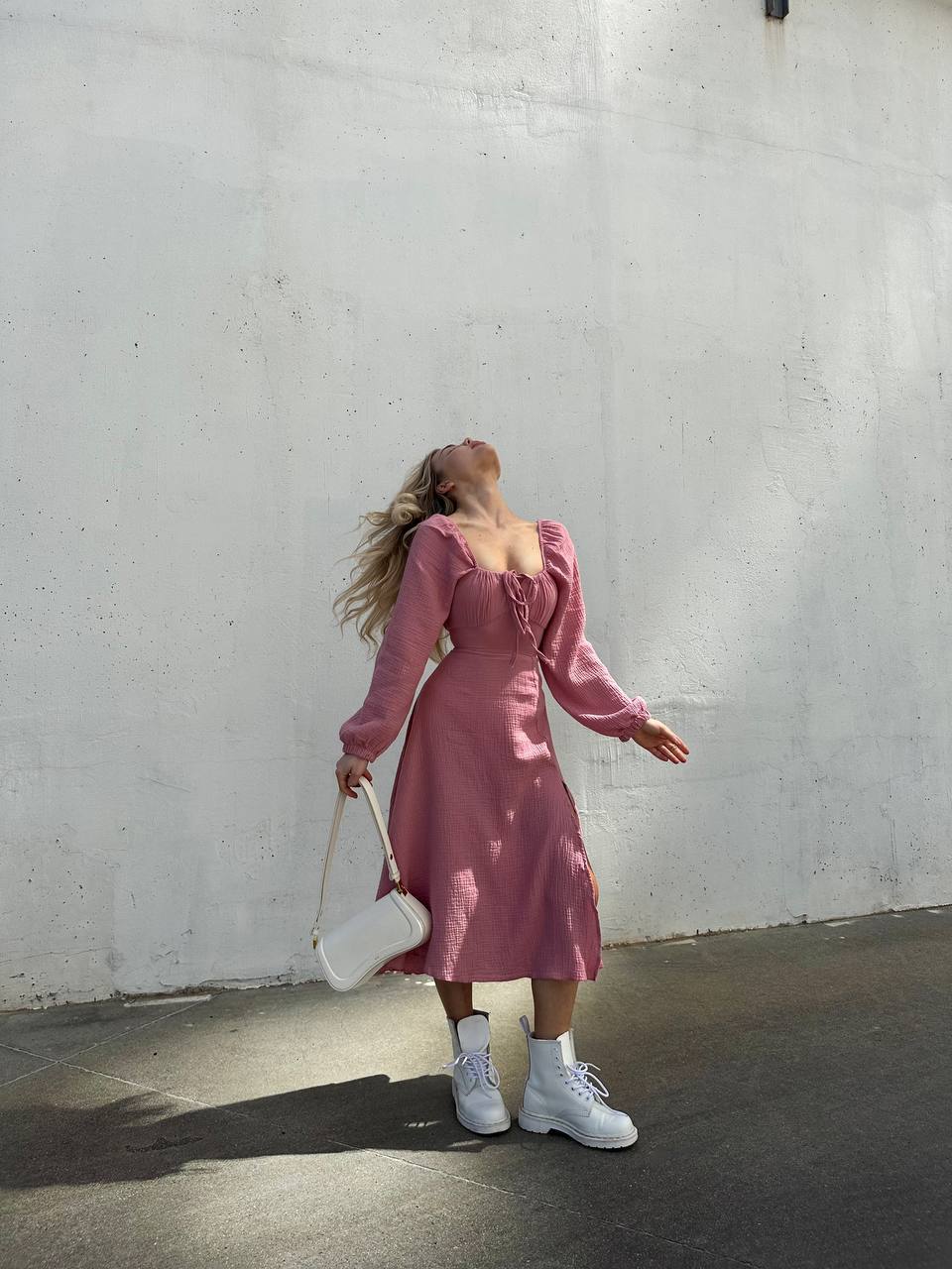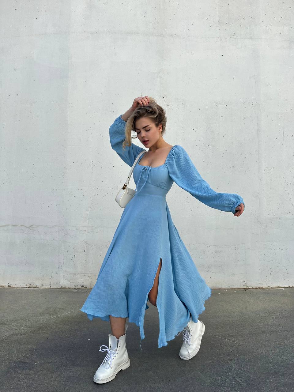 - Ткань: Муслин, на спинке шнуровка, позволяющая регулировать форму декольте