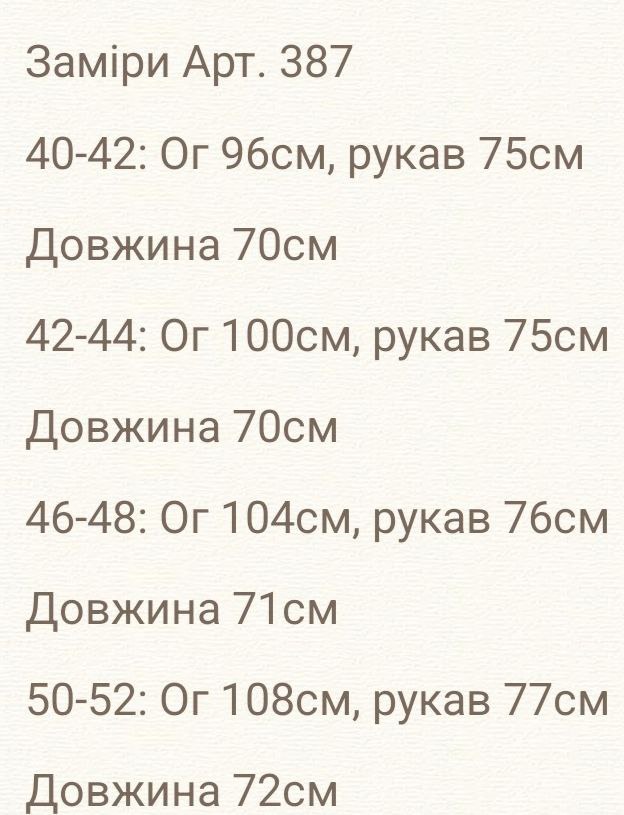 - Размеры: X-S(40-42), S-M (42-44), L-XL(46-48), 2LX-3XL (50-52)