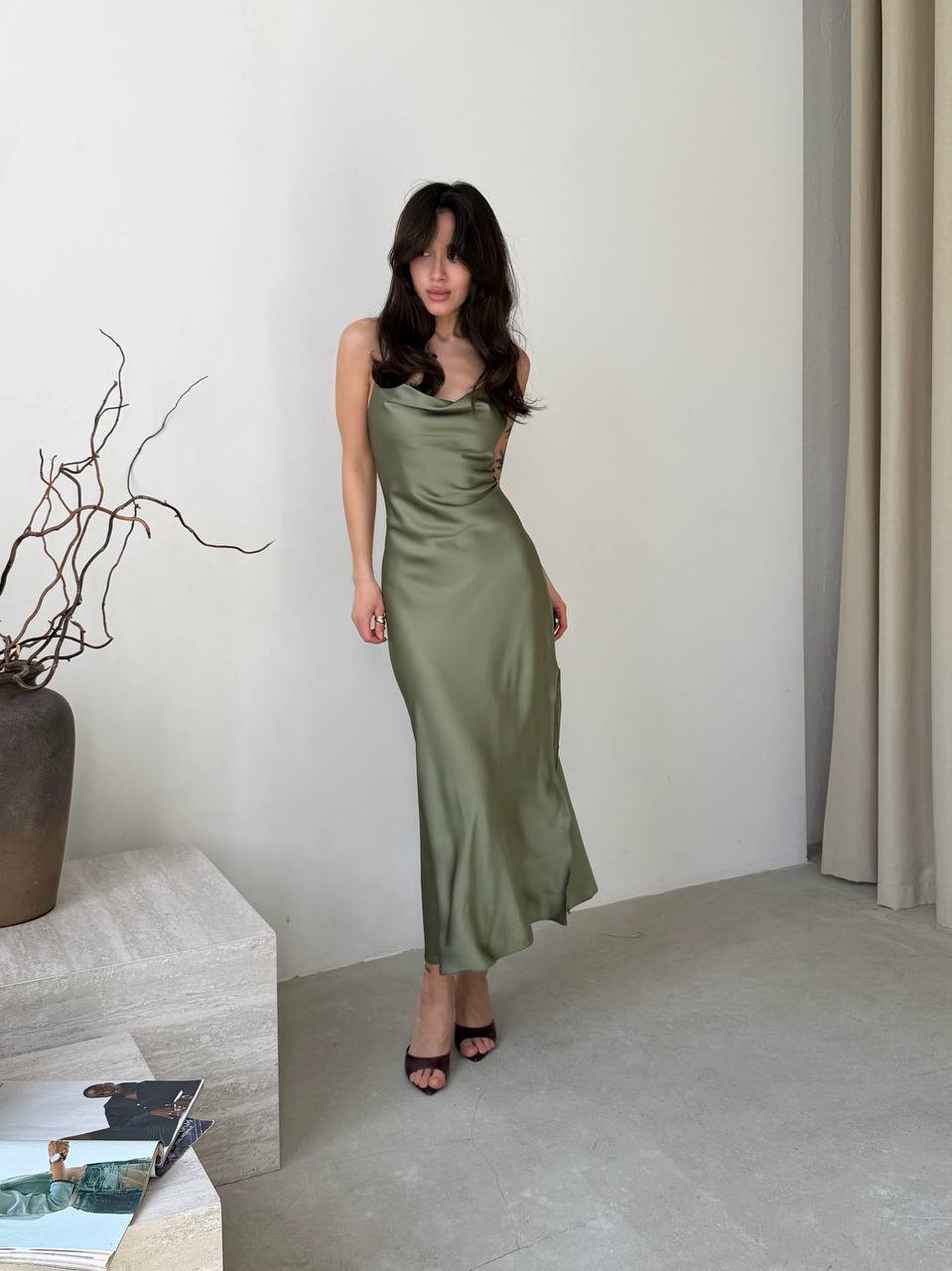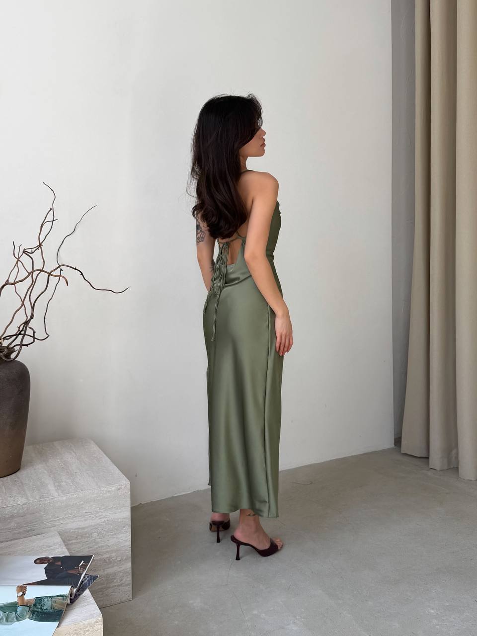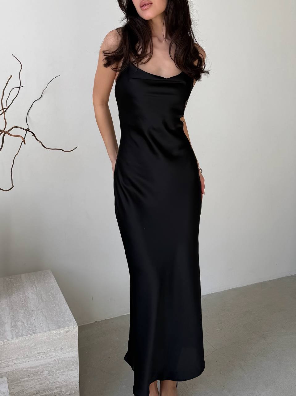 - Шелковое платье на бретельках
