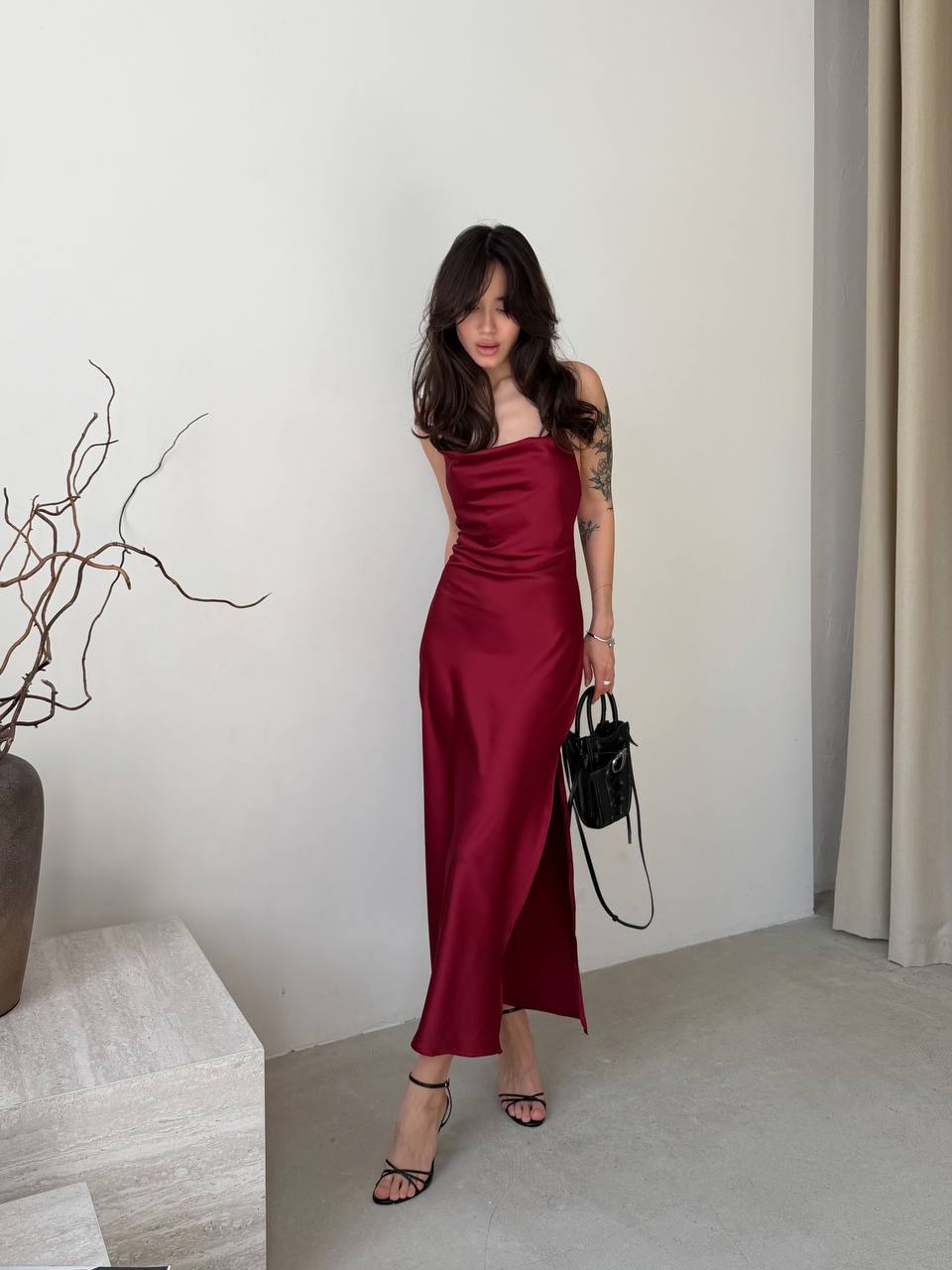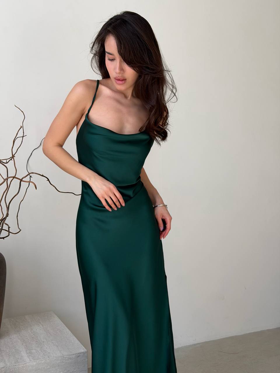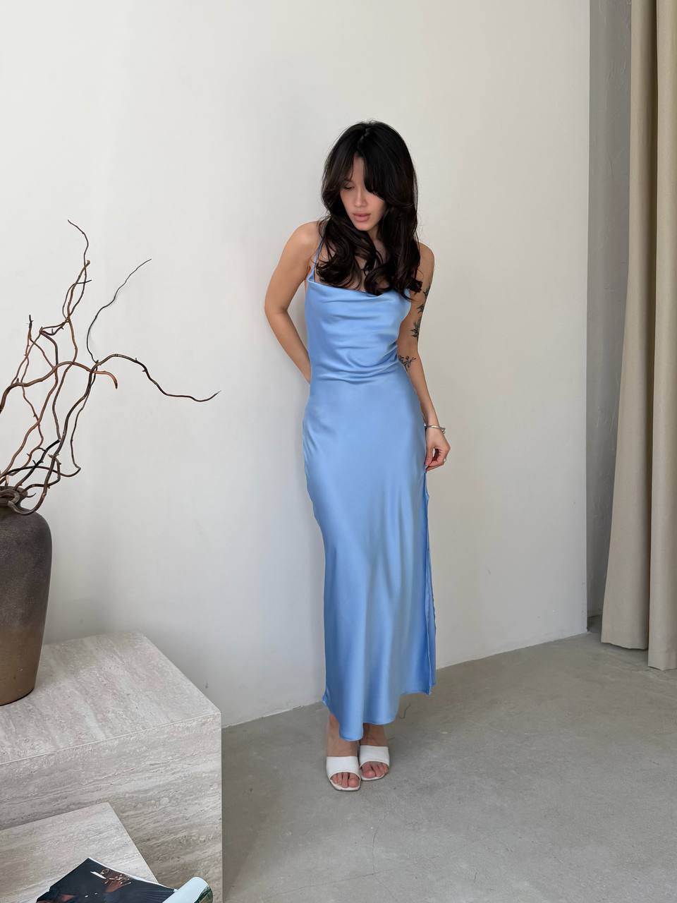 - Шелковое платье на бретельках