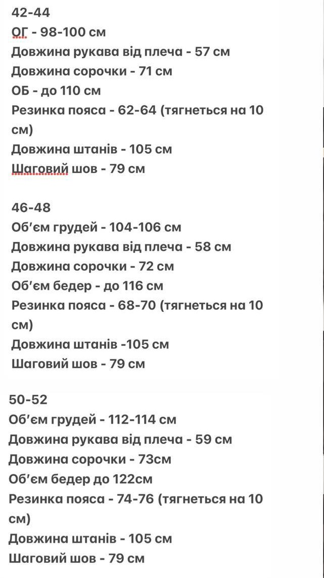 | 2XL | 44 | 50 | 98-102 | 78-82 | 106-110 |