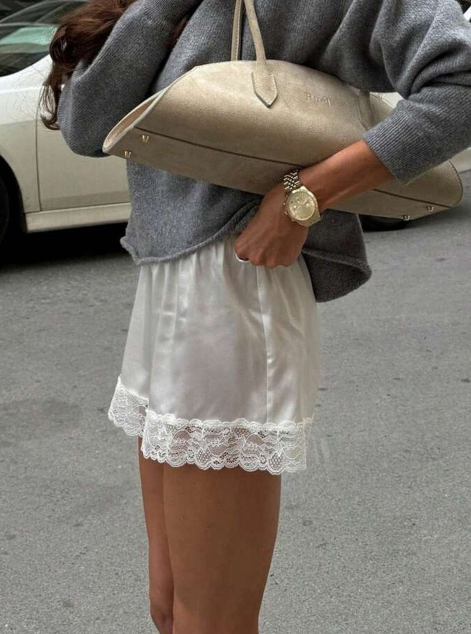 - Шелковые шорты с кружевом