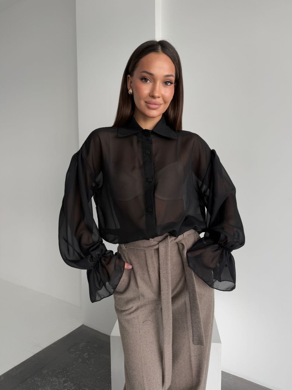 - Шифоновая блуза с широкими рукавами