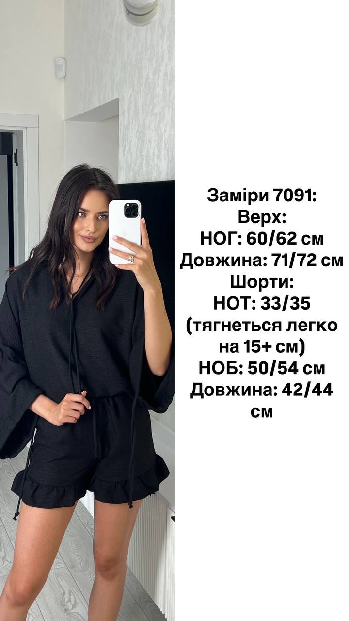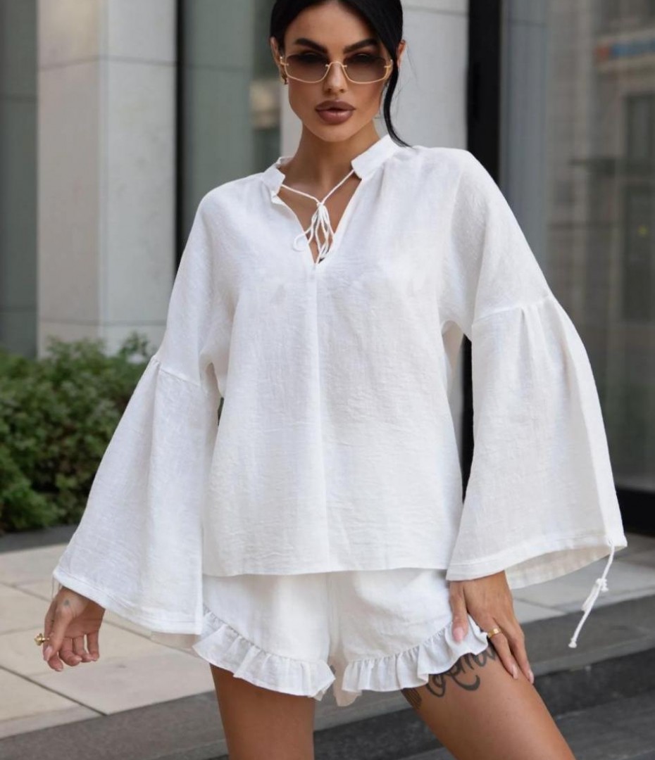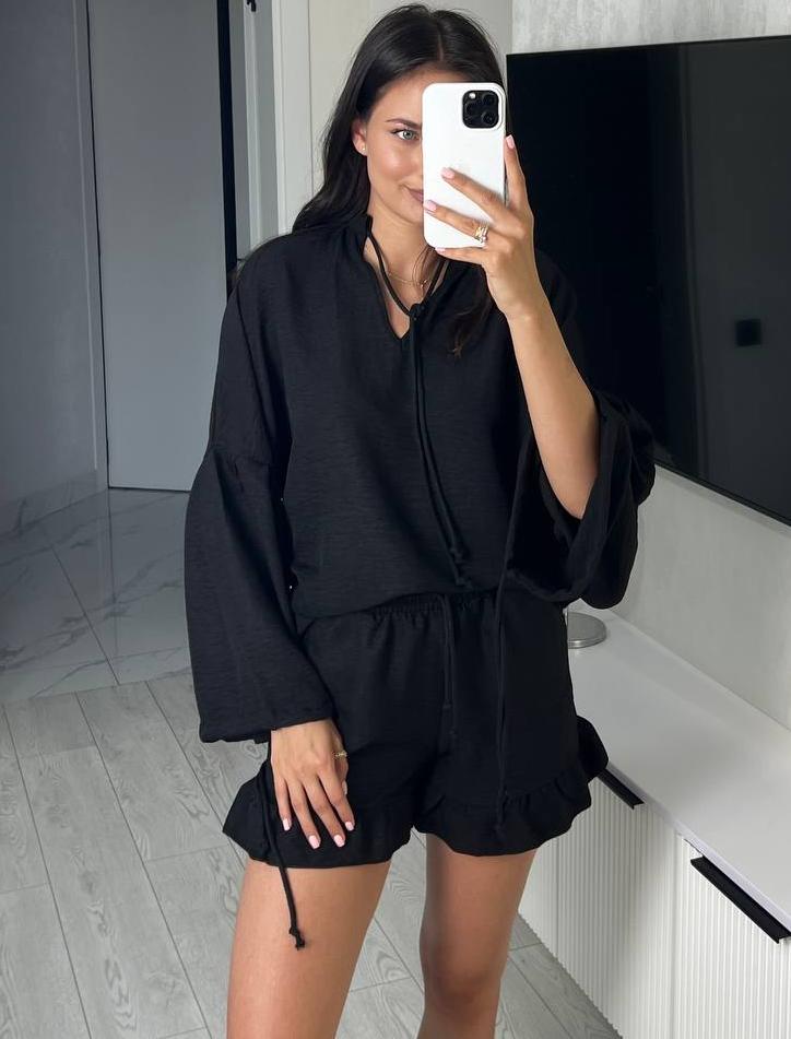 - Шорти и блузка широкими рукавами