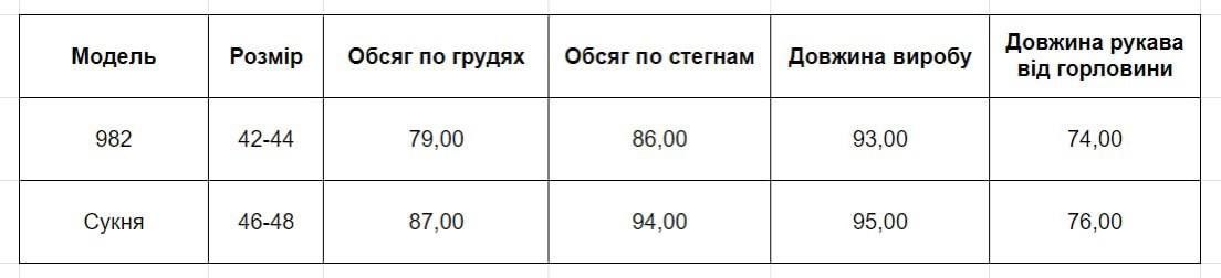 | EU | UA | Грудь | Талия | Бедра | |