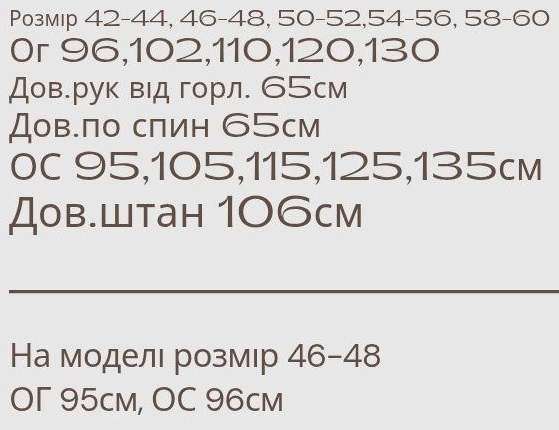 - Размеры: 42-44, 46-48, 50-52, 54-56, 58-60