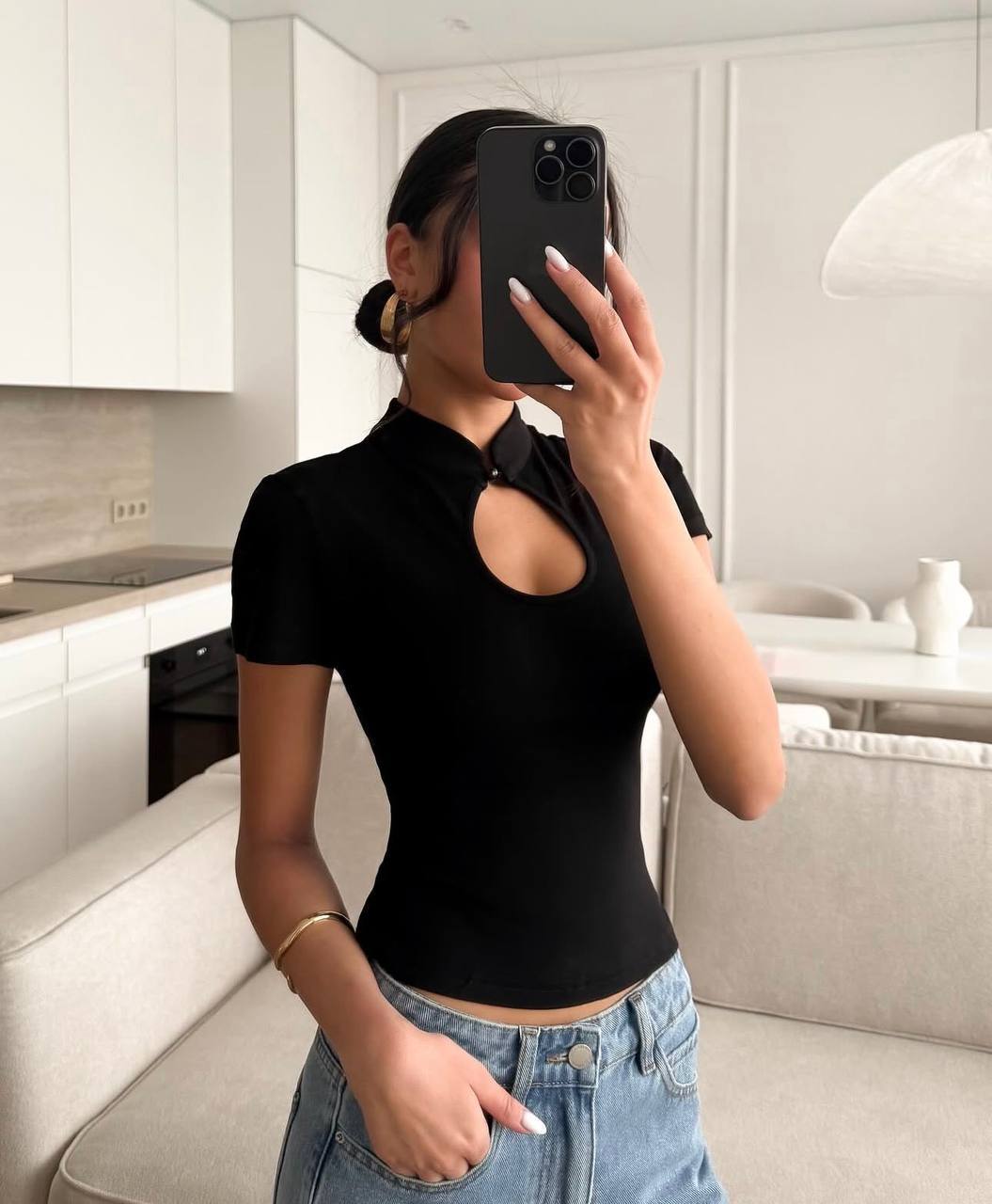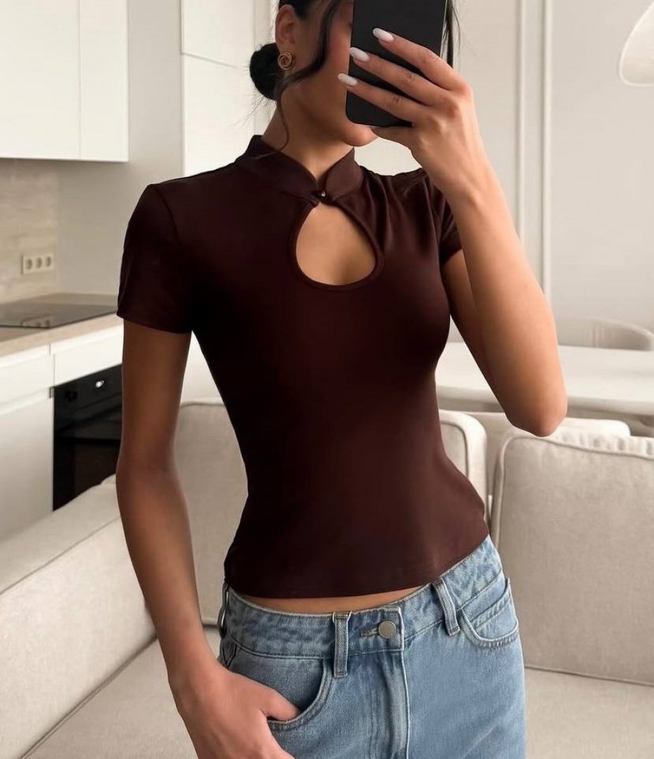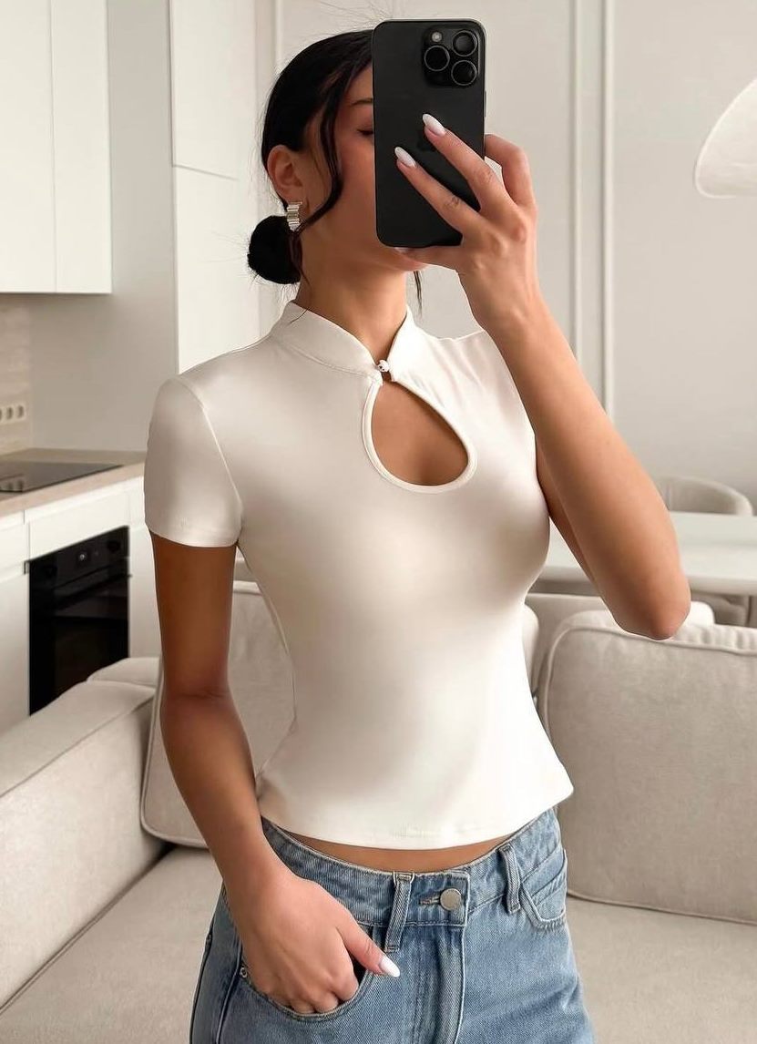 - Стильная женская футболка с вырезом