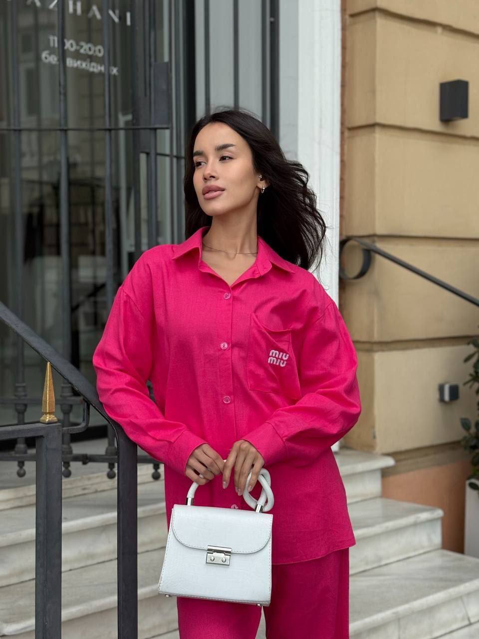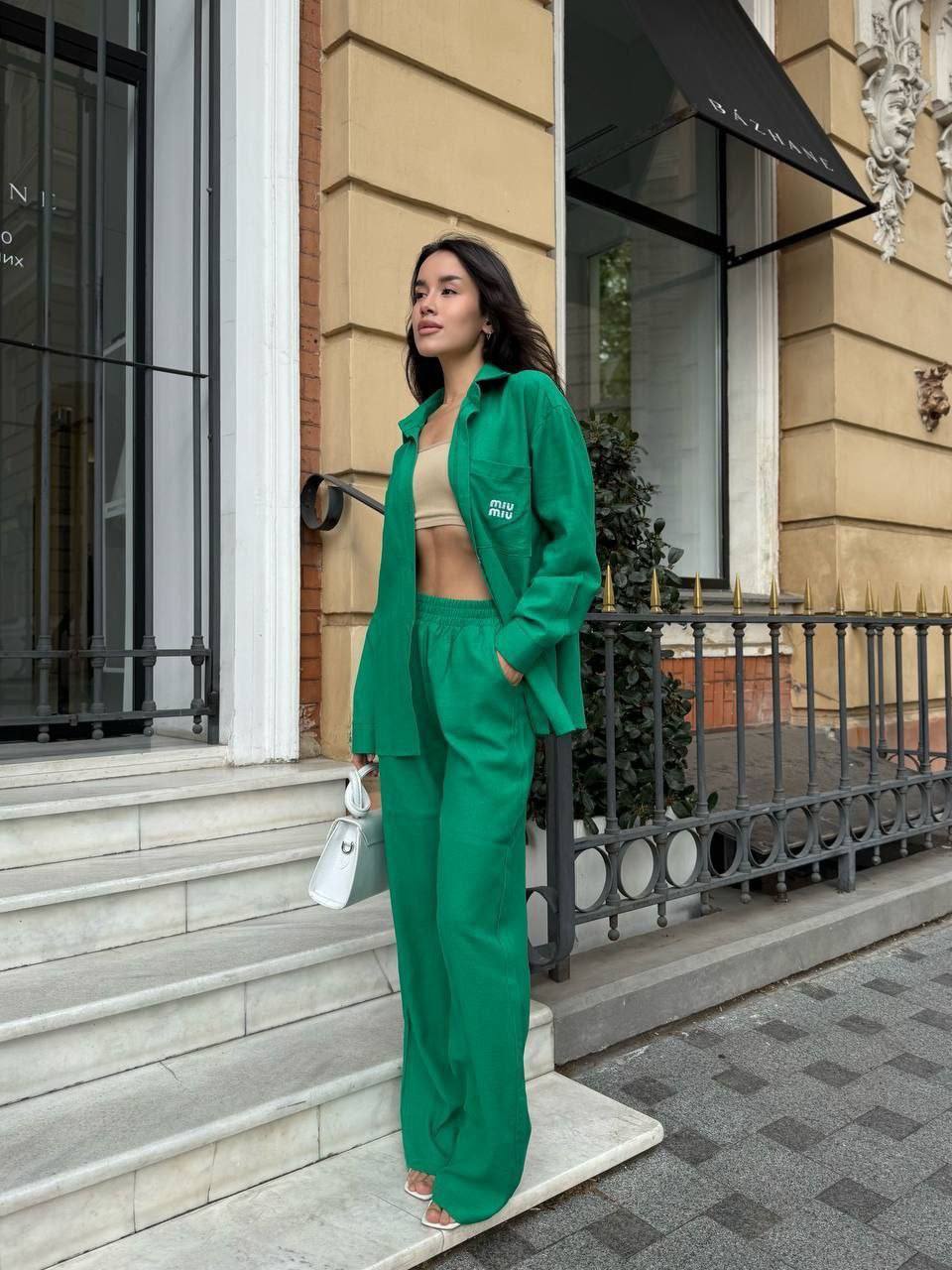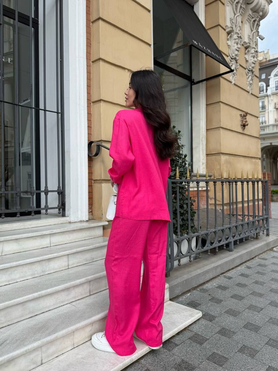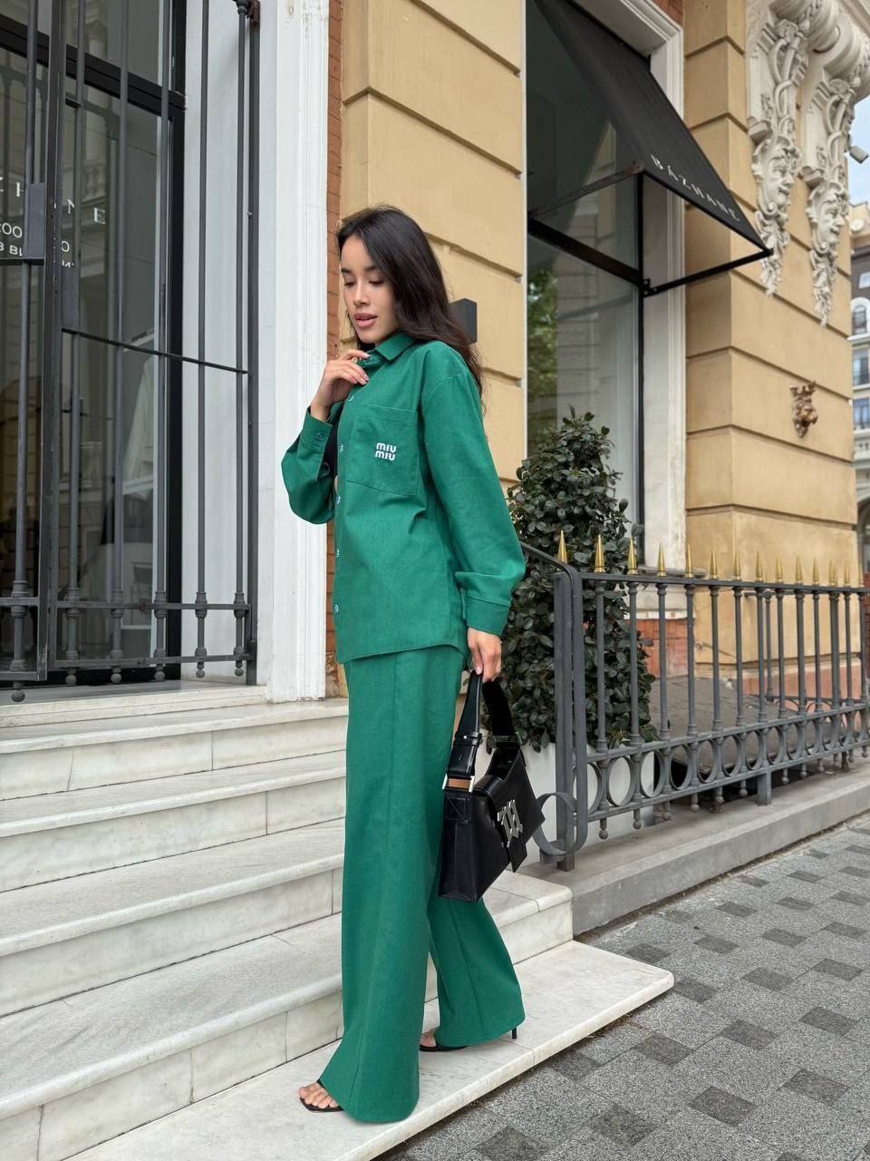 - Свободная рубашка и брюки прямого кроя