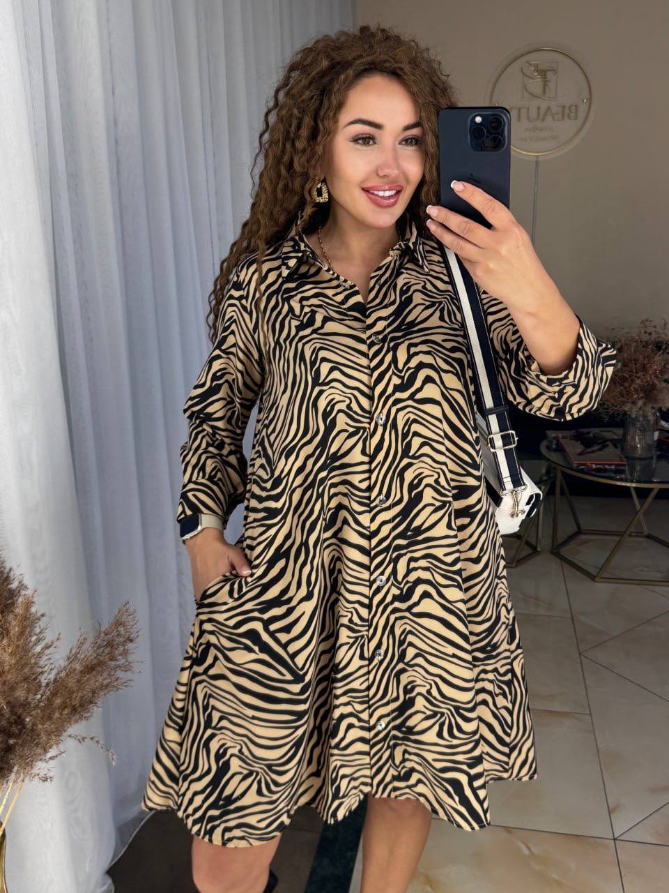 - Свободное платье на пуговицах