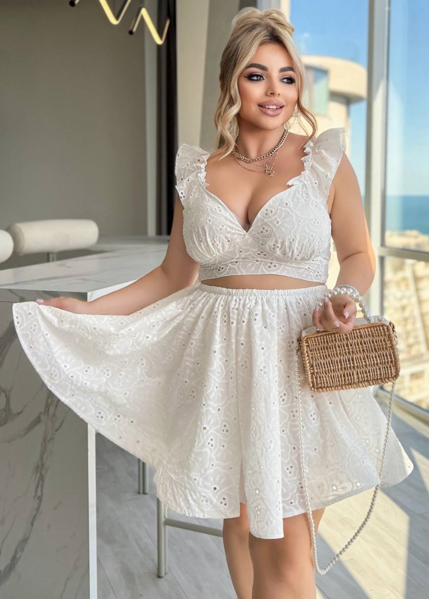 - Материал: хлопок с вышивкой и перфорацией