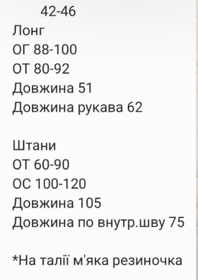 | 3XL | 46 | 52 | 102-106 | 82-86 | 110-114 |