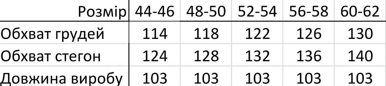 - Размеры; 44/46, 48/50, 52/54, 56/58, 60/62