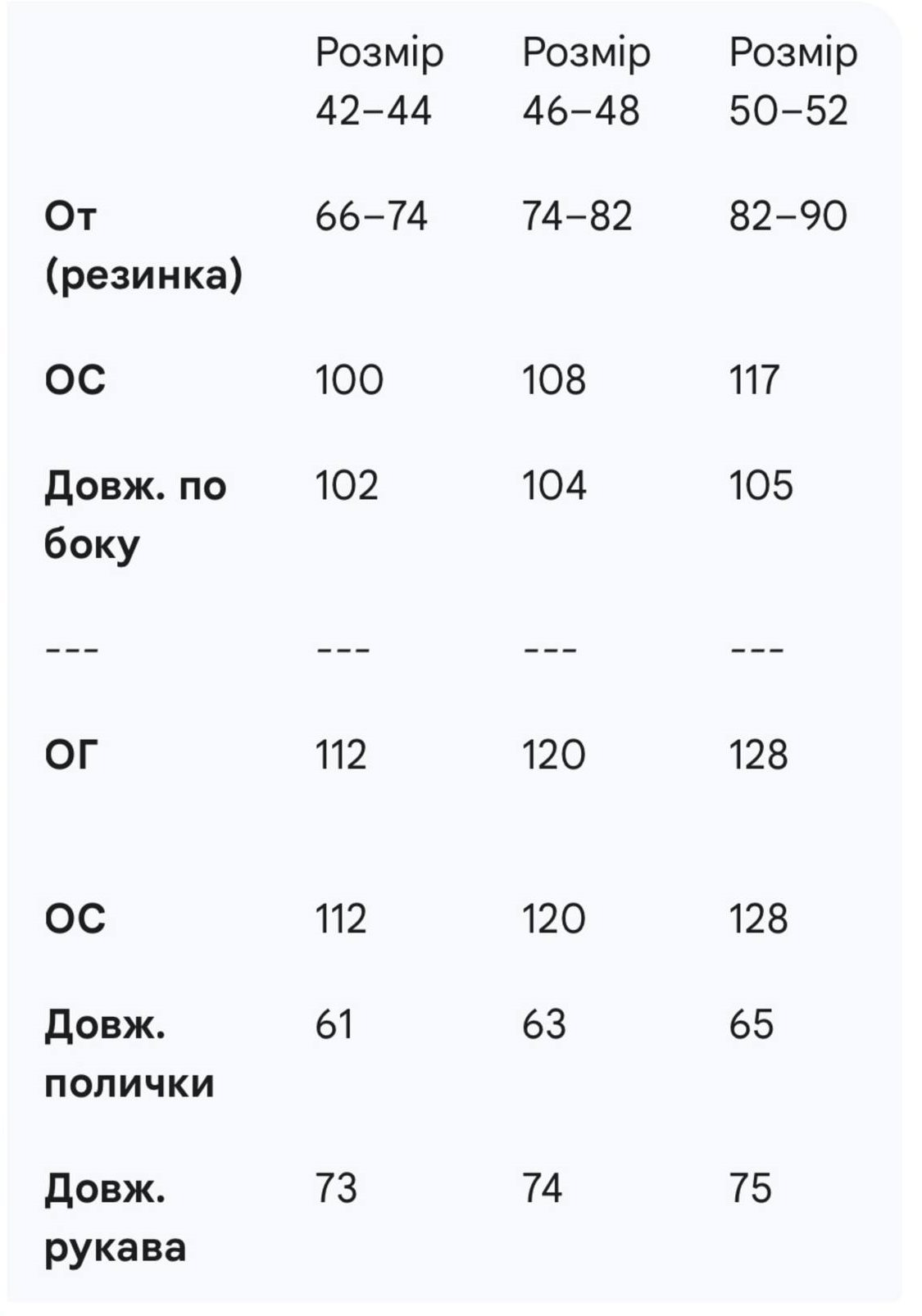 | 3XL | 46 | 52 | 102-106 | 82-86 | 110-114 |