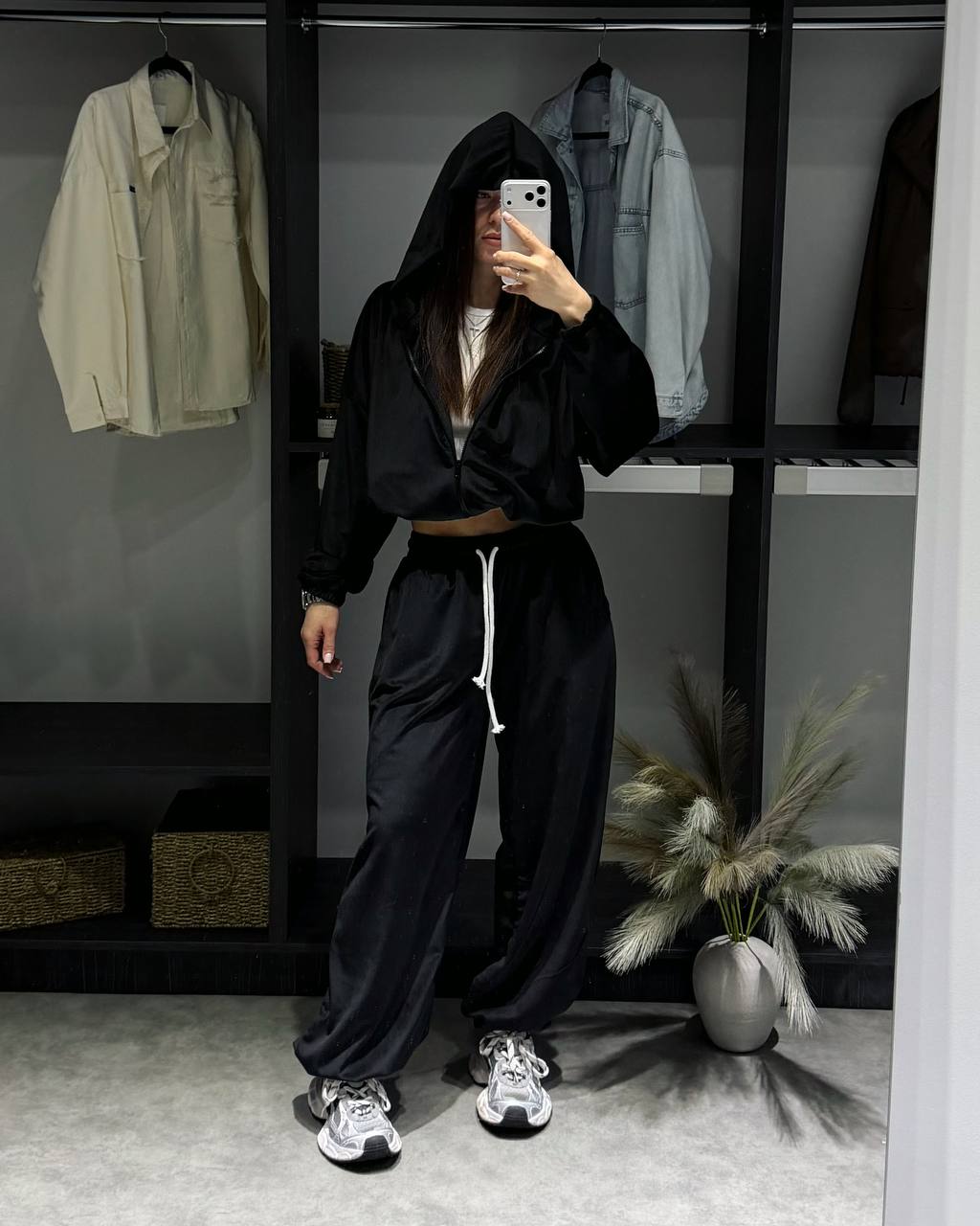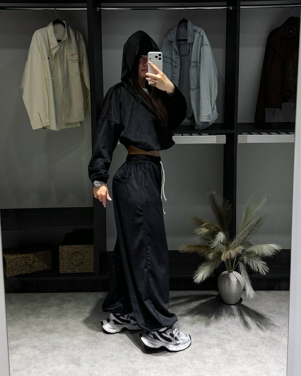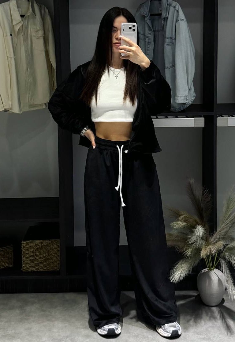 - Укороченное худи и свободные штаны