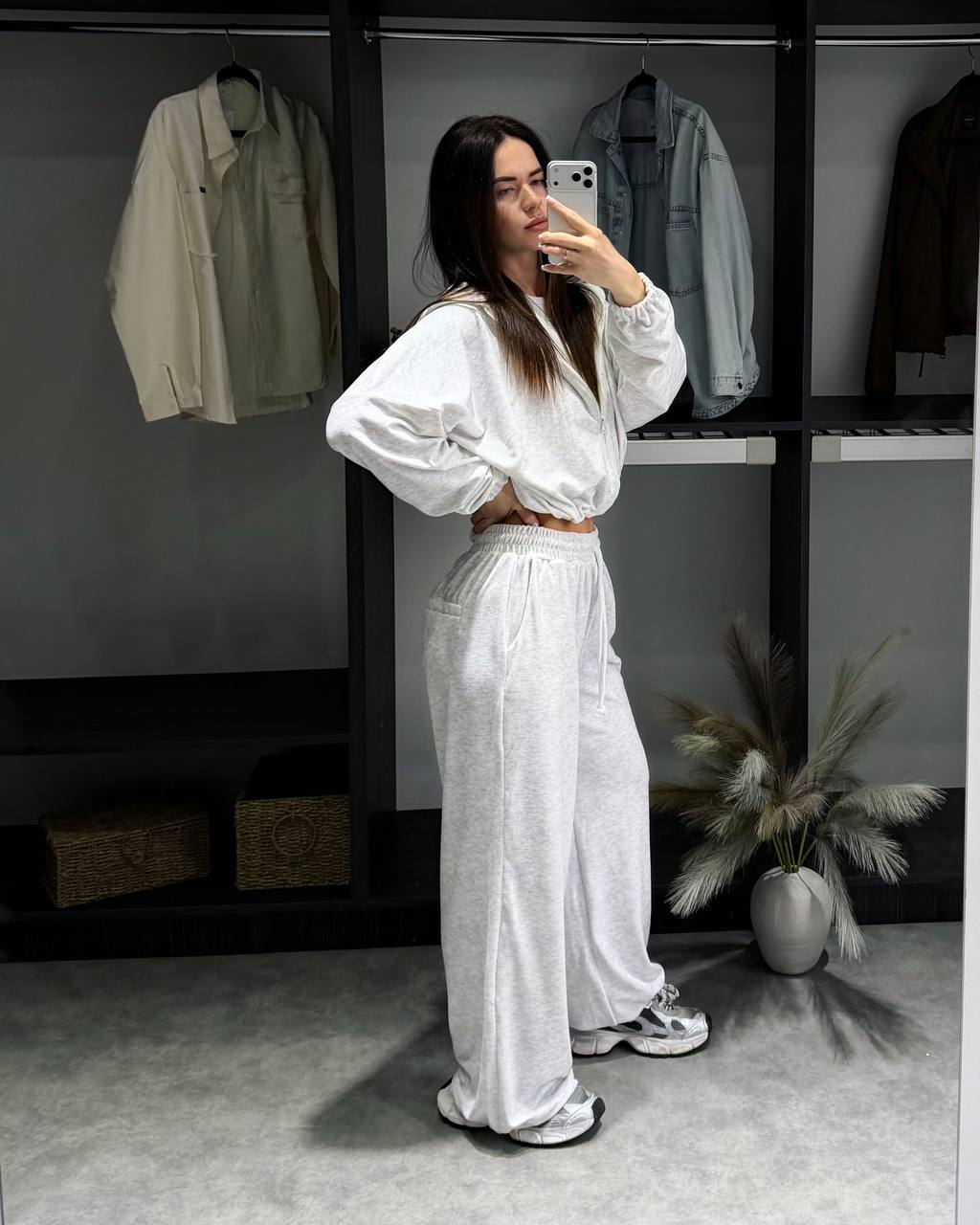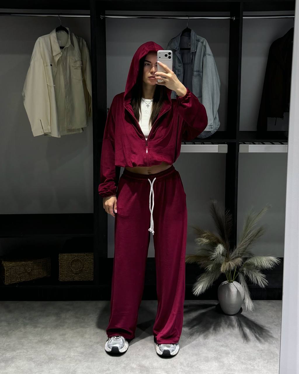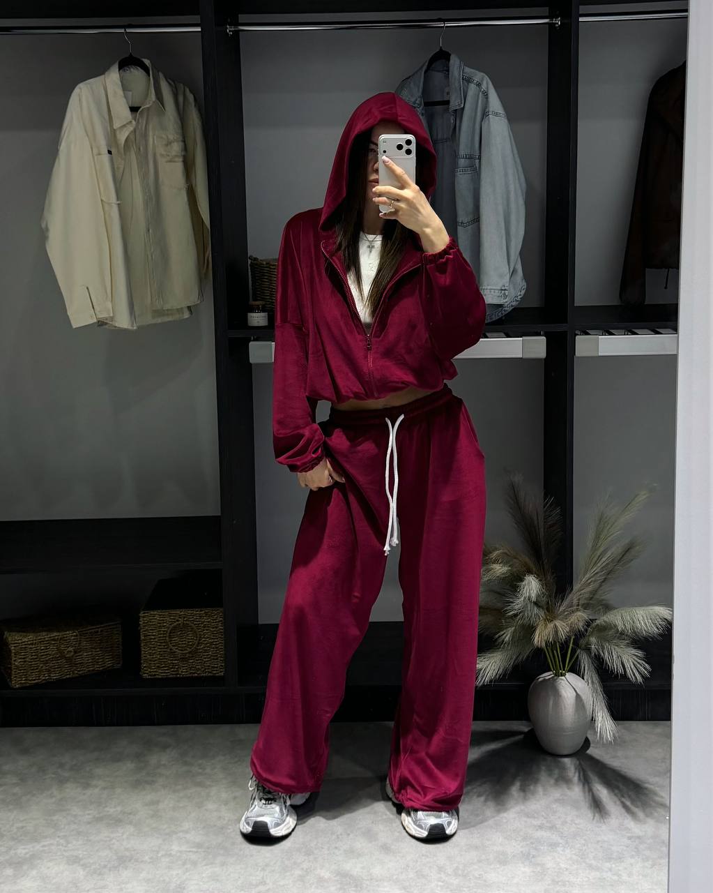 - Укороченное худи и свободные штаны