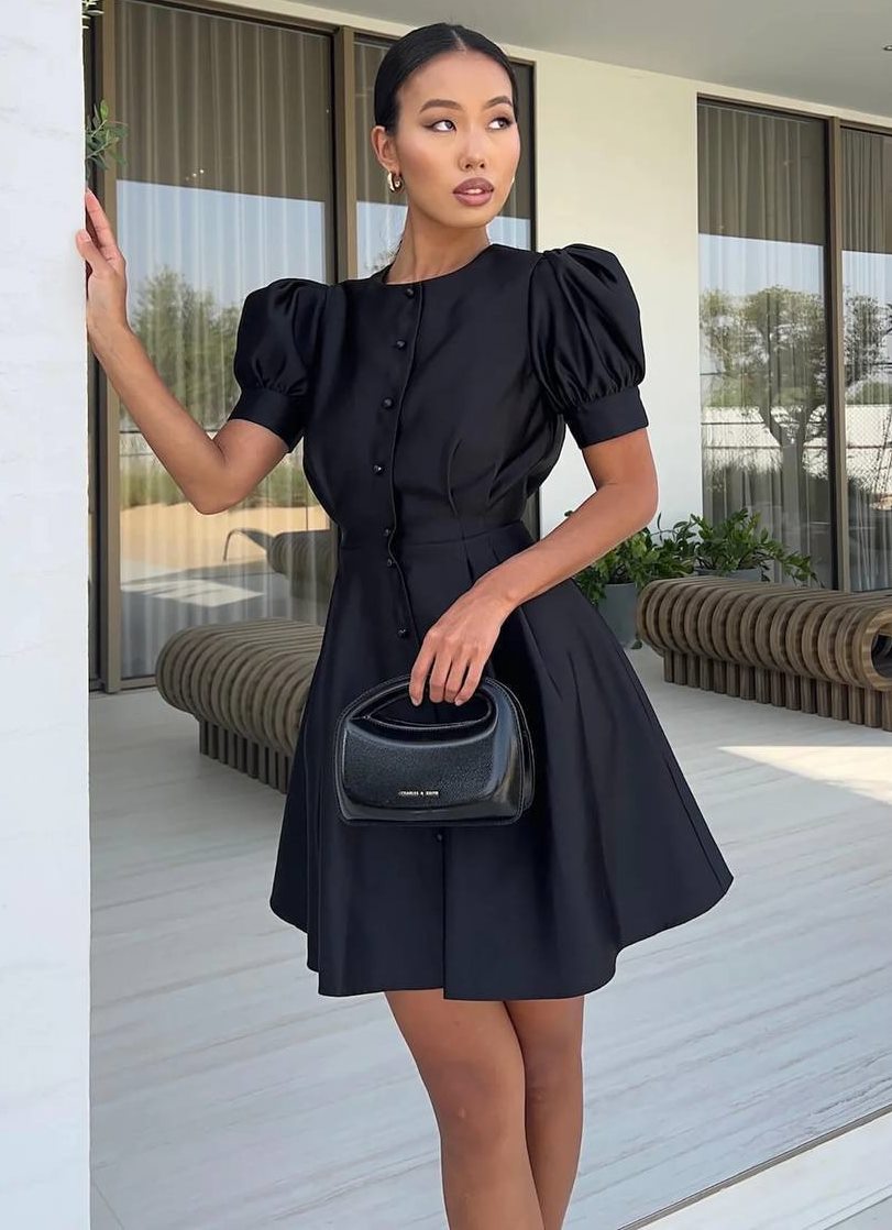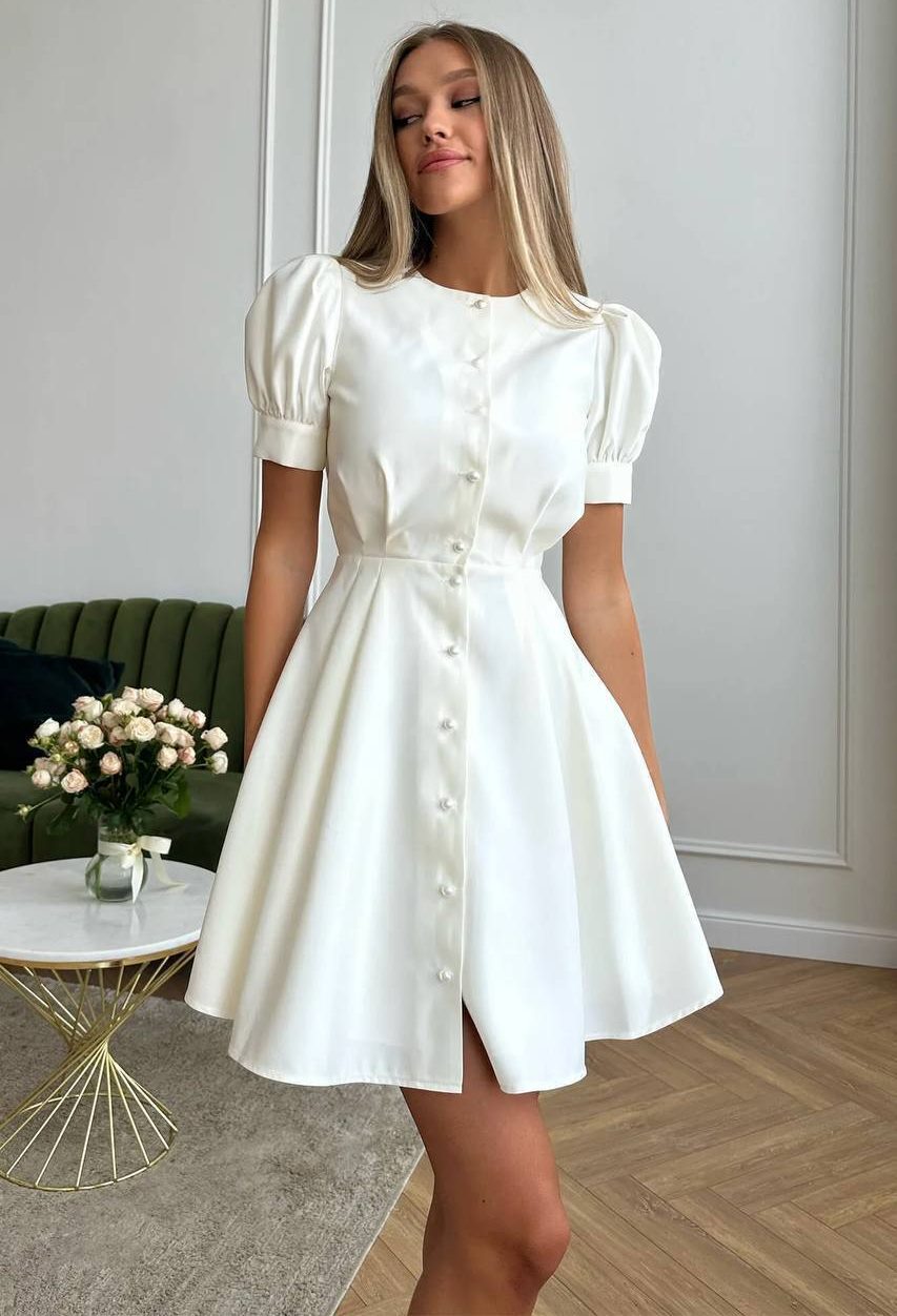 - Утонченное платье с жемчужными пуговицами