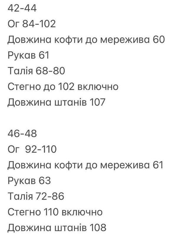 | 2XL | 44 | 50 | 98-102 | 78-82 | 106-110 |