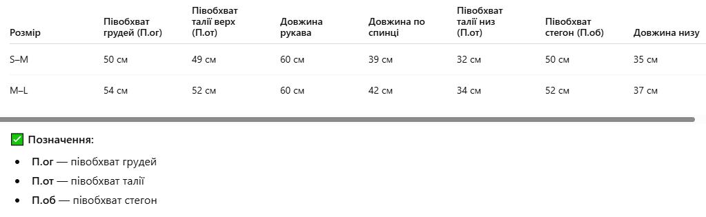 | EU | UA | Грудь | Талия | Бедра | |
