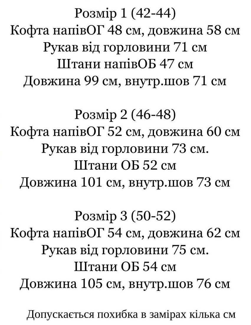| 3XL | 46 | 52 | 102-106 | 82-86 | 110-114 |