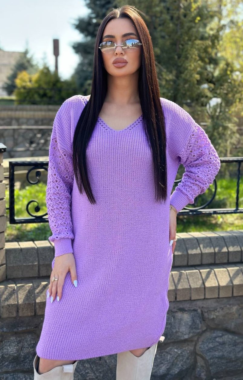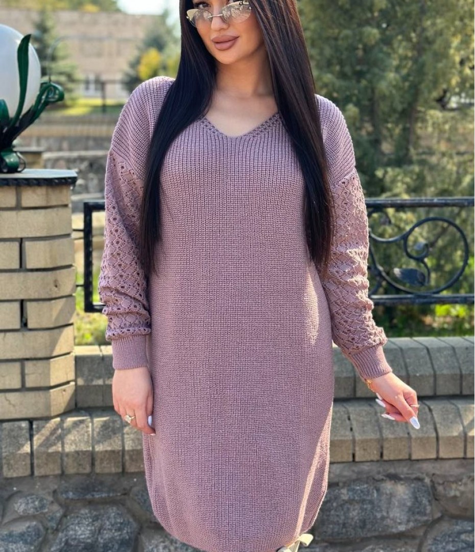 - Вязаное платье с ажурными рукавами