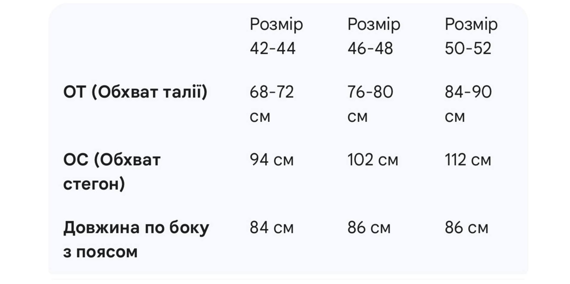 | EU | UA | Грудь | Талия | Бедра | |