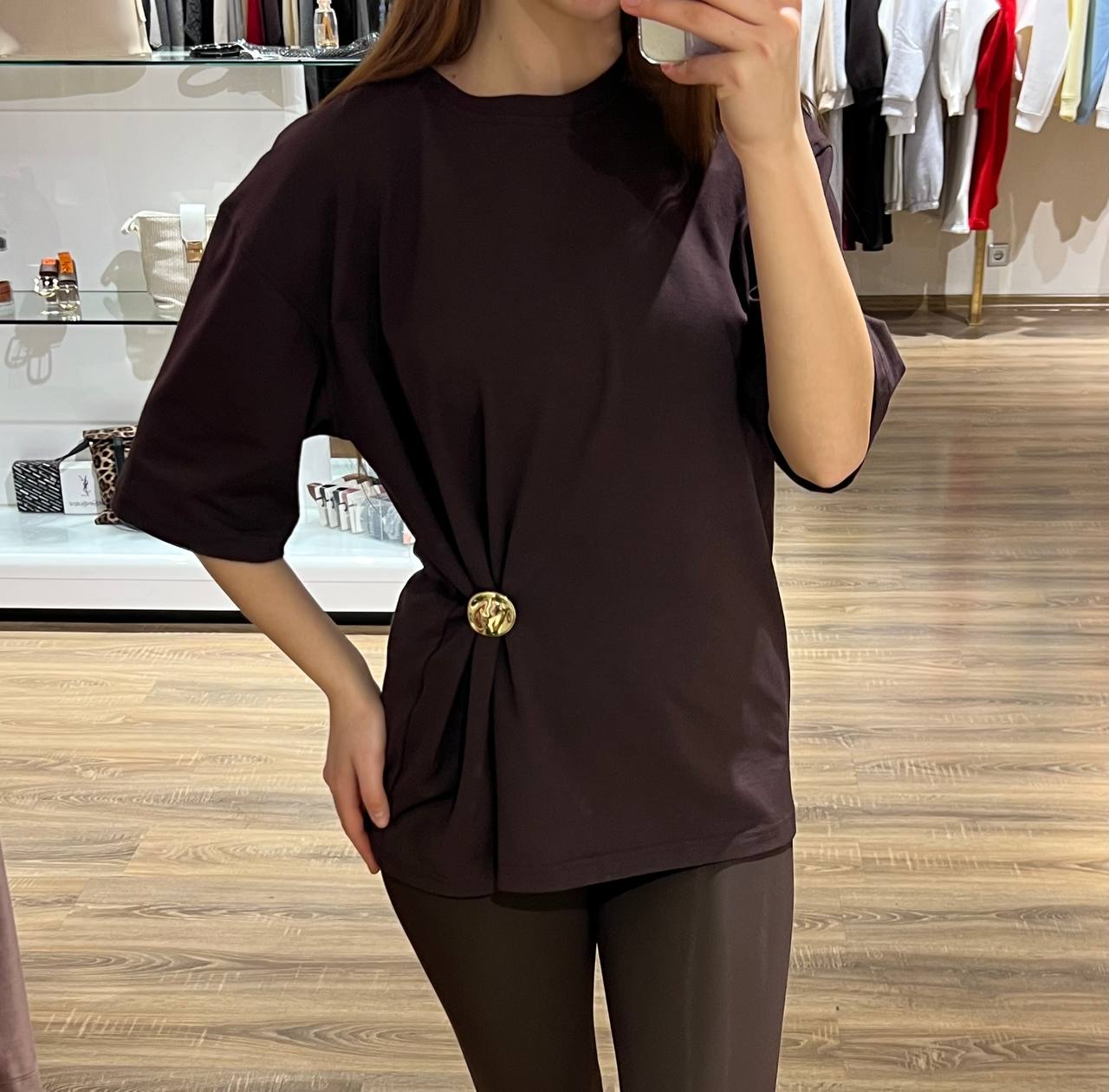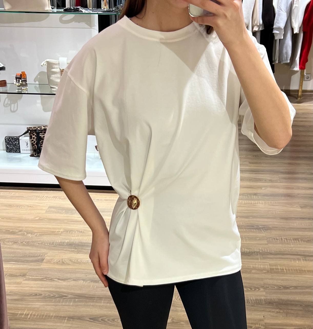 - Женская футболка c брошкой