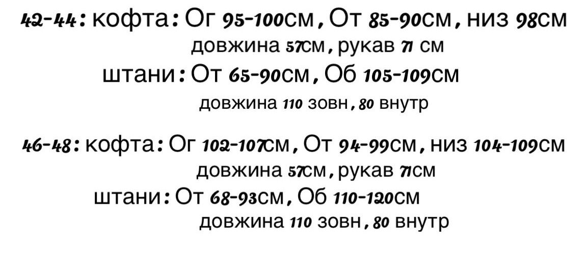 | 3XL | 46 | 52 | 102-106 | 82-86 | 110-114 |