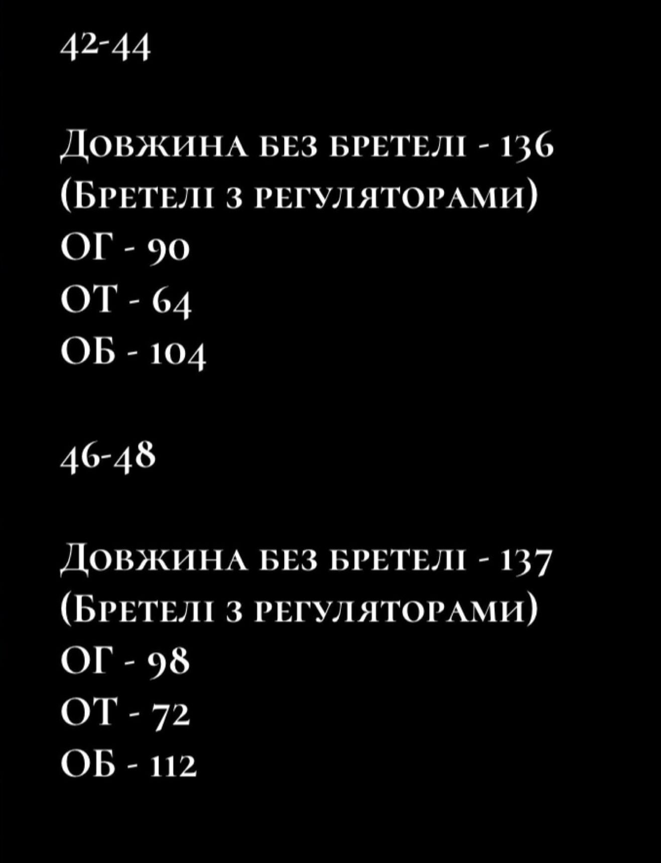| EU | UA | Грудь | Талия | Бедра | |