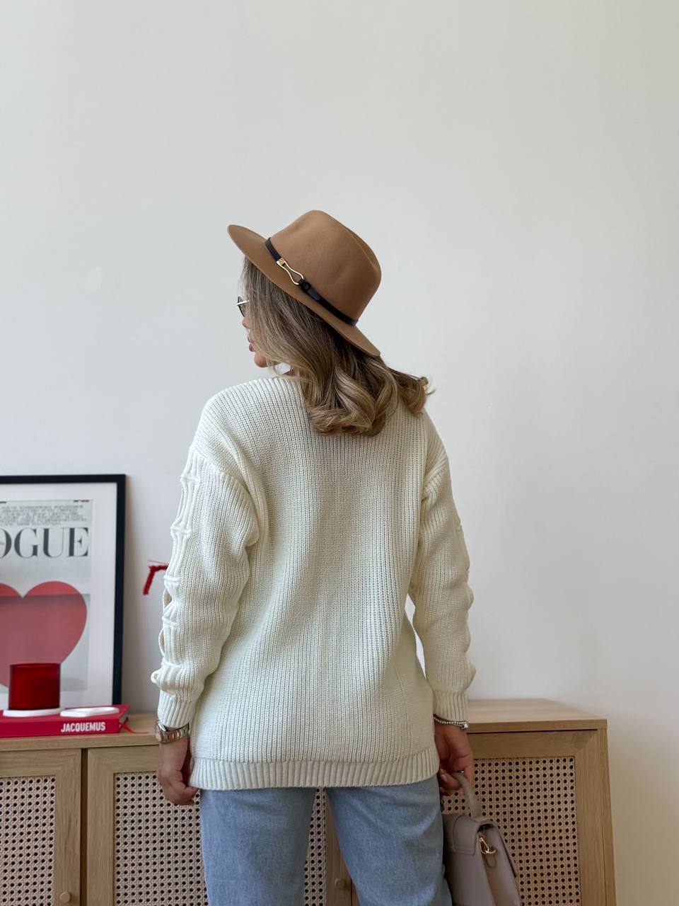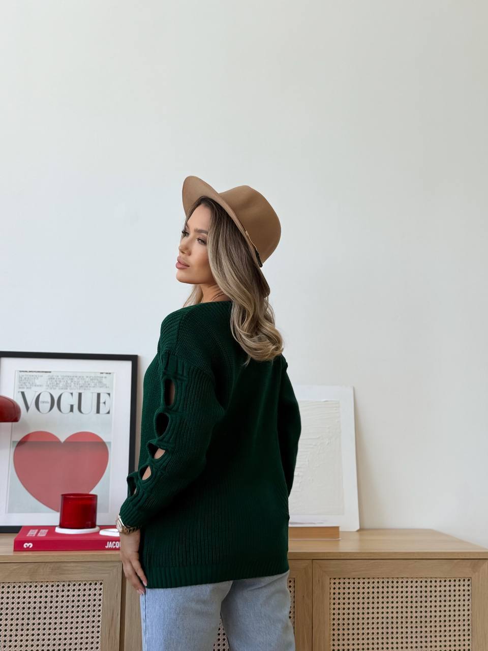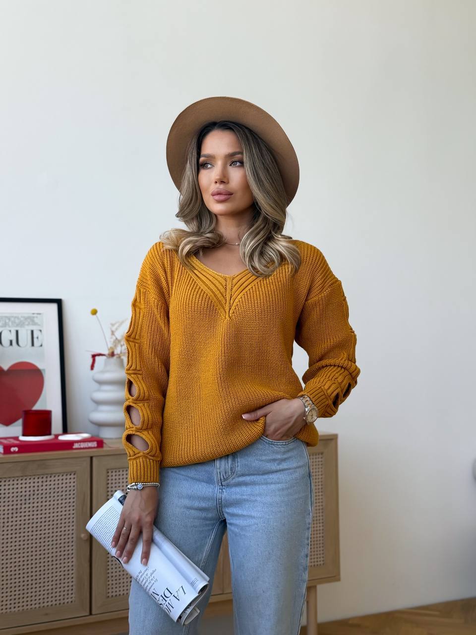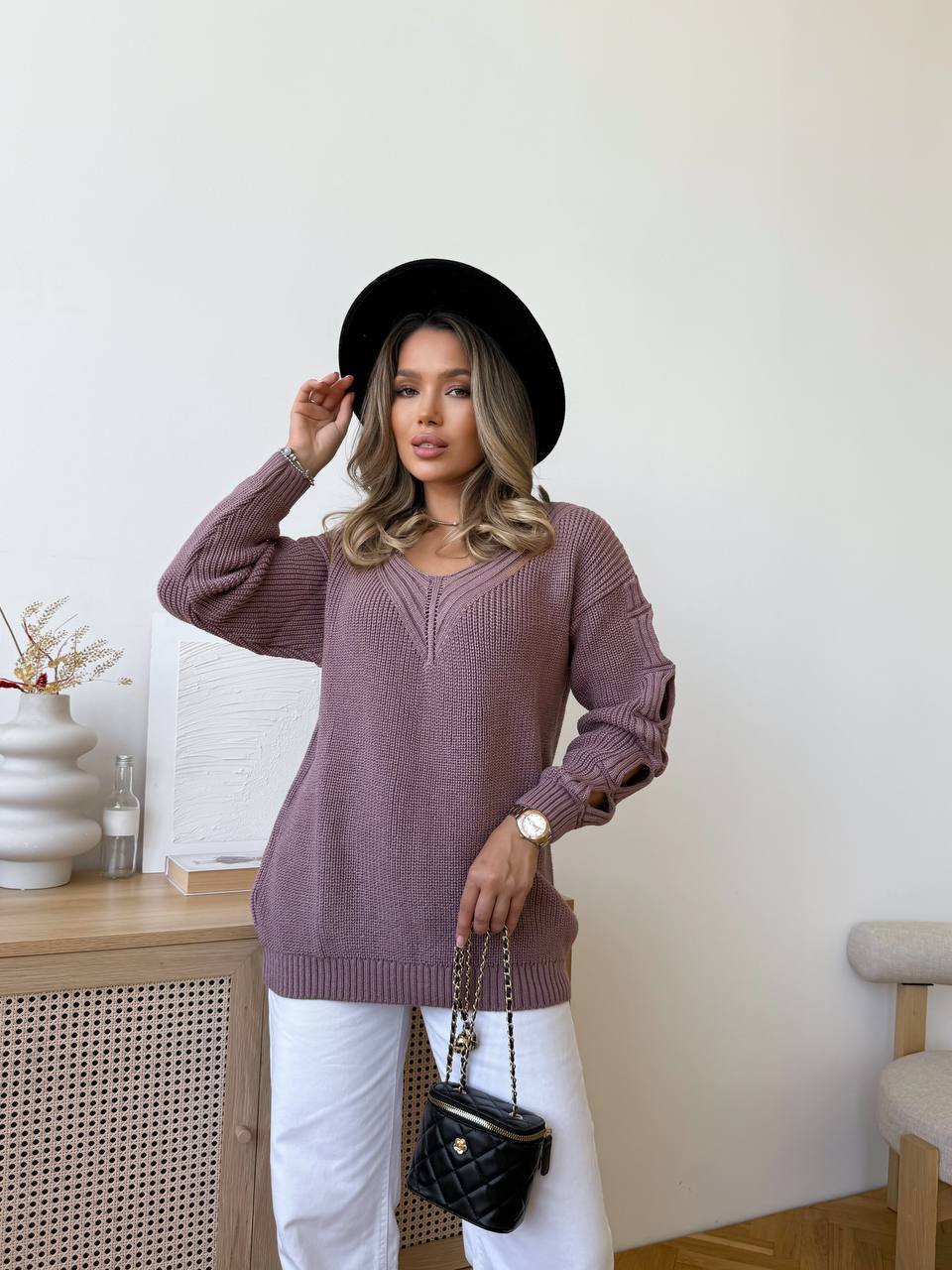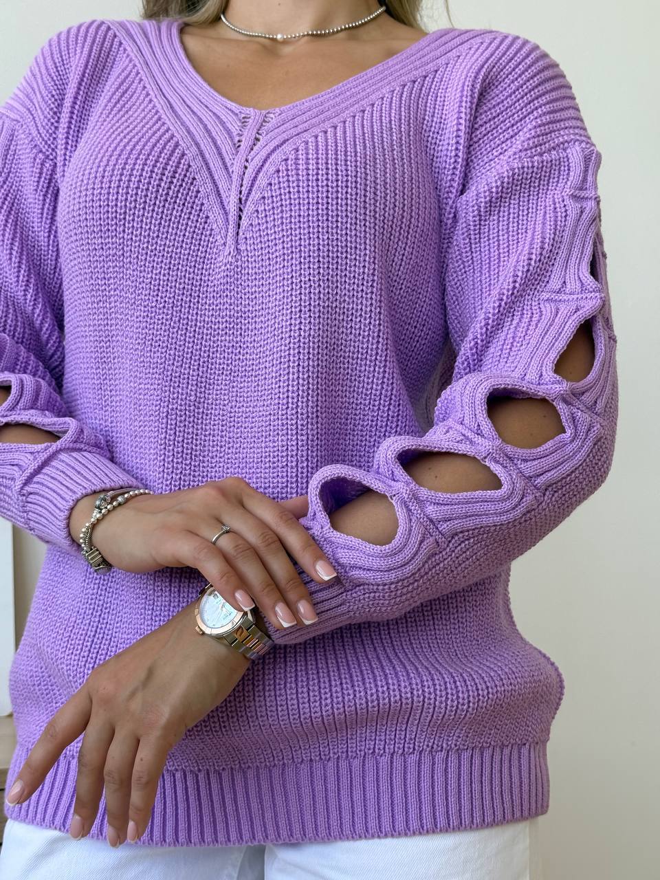 - Женский свитер с прорезями на рукавах