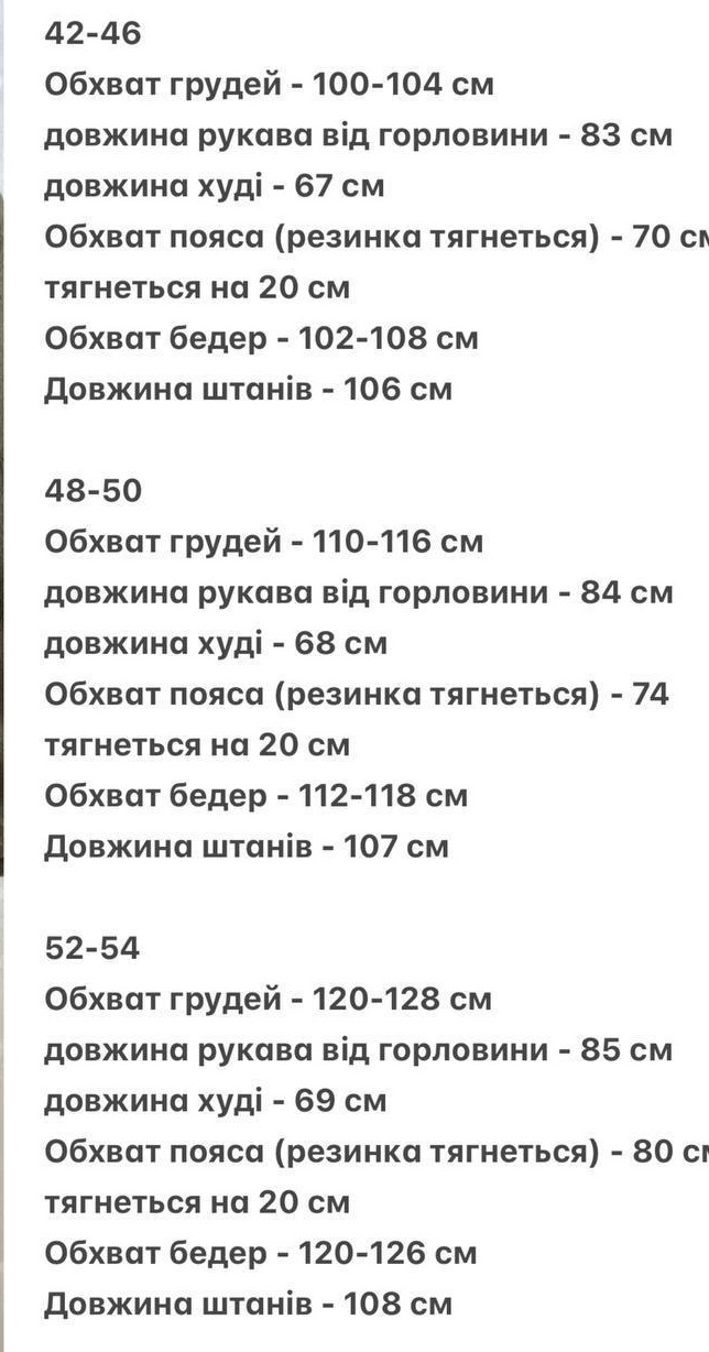 | обхват бедер | 95 | 98 | 101 | 104 | 107 | 110 | 113 | 116 | 119 | 122 |