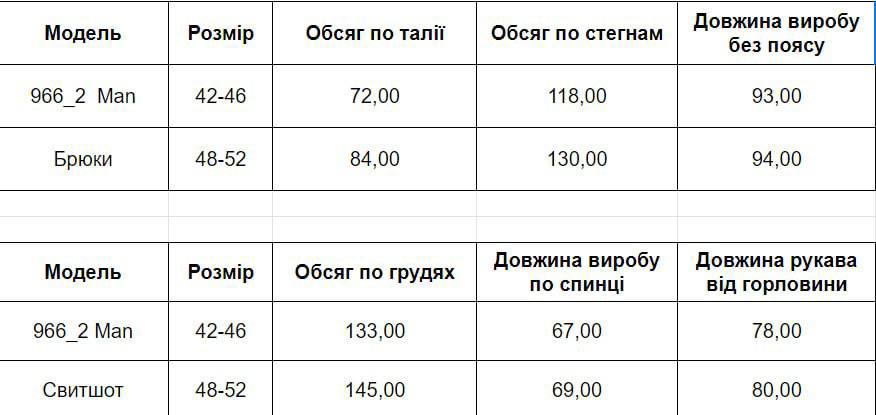 | размер | 42 | 44 | 46 | 48 | 50 | 52 | 54 | 56 | 58 | 60 |