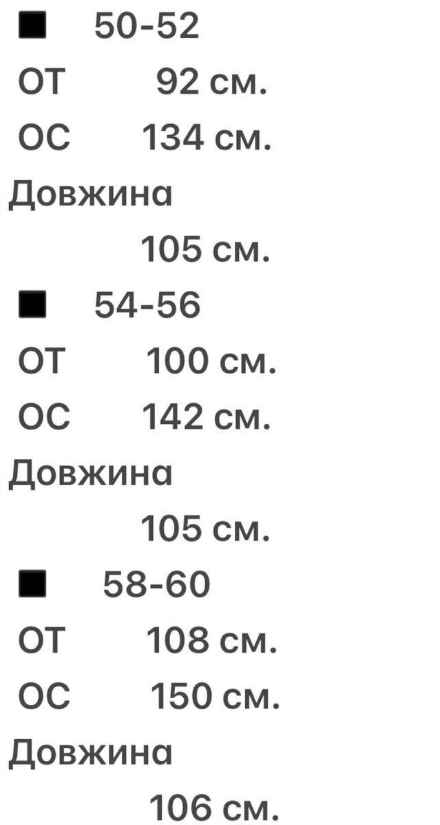 - Розміри: 50-52, 54-56, 58-60