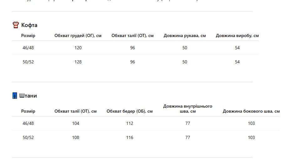 Таблиця розмірівРозмірна сітка для жіночого одягу