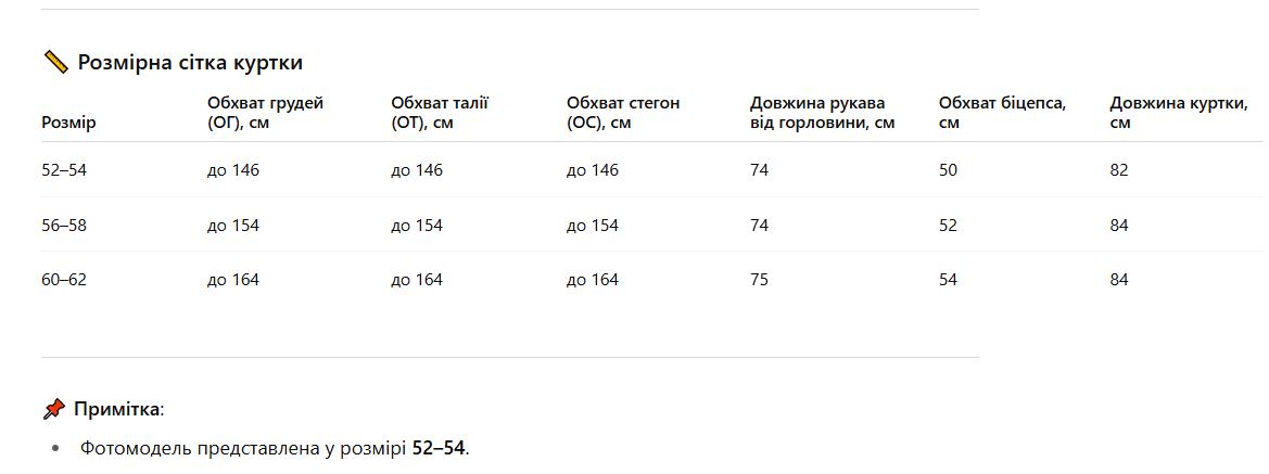 Таблиця розмірівРозмірна сітка для жіночого одягу