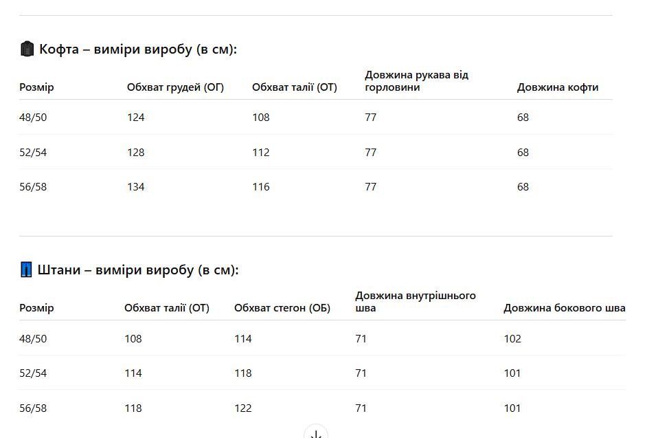 Таблиця розмірівРозмірна сітка для жіночого одягу