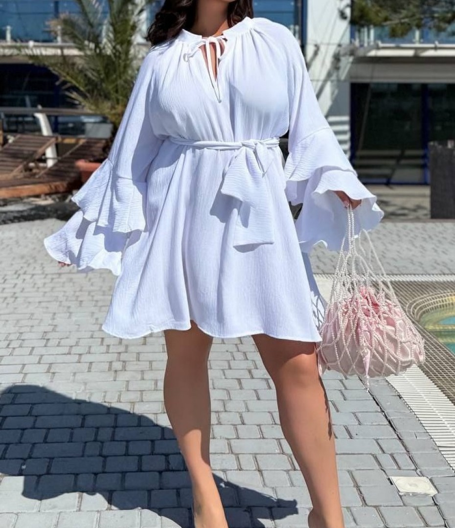 - Тканина: американський креп-жатка (легка,текстурна,струмлива,практична)