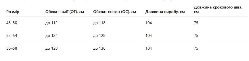 Таблиця розмірівРозмірна сітка для жіночого одягу