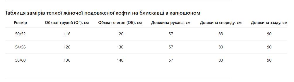 Таблиця розмірівРозмірна сітка для жіночого одягу