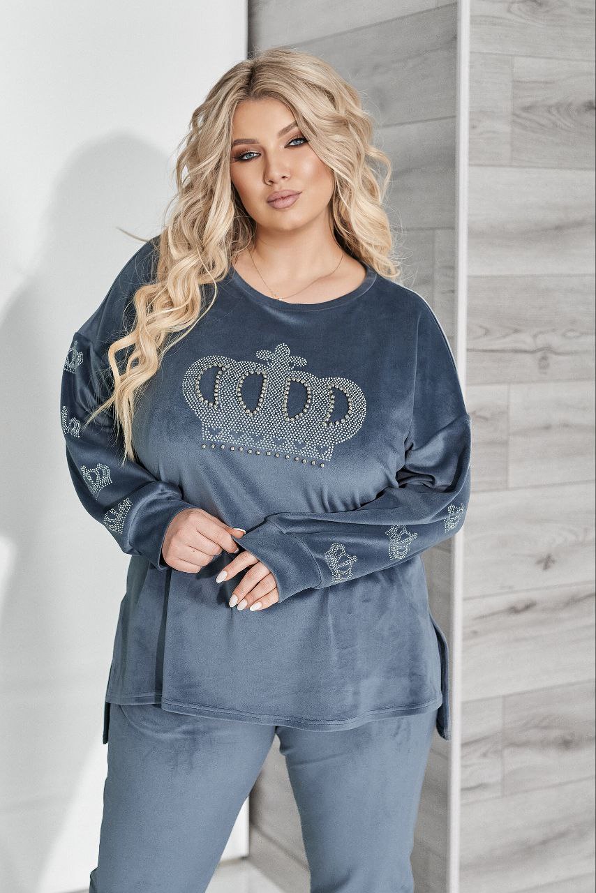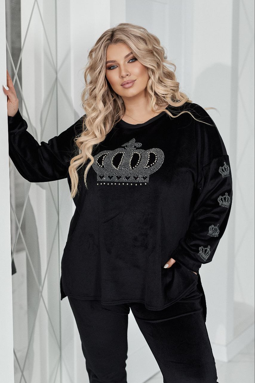 - Велюровий костюм зі стразами