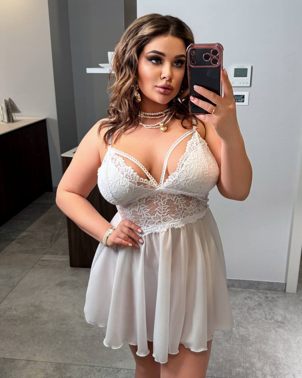 - 54-56 Об'єм грудей - 114 см, Об'єм під грудьми - 84 см, Висота нічної сорочки з урахуванням бретелей - 83 см
