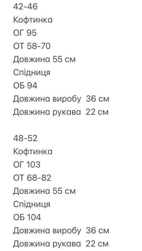Таблиця розмірівРозмірна сітка для жіночого одягу
