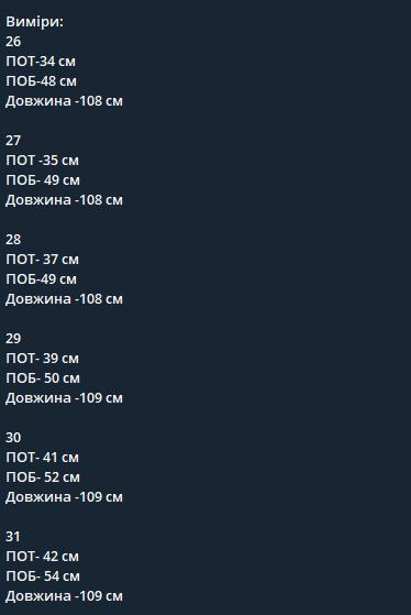 Таблиця розмірівРозмірна сітка для жіночого одягу