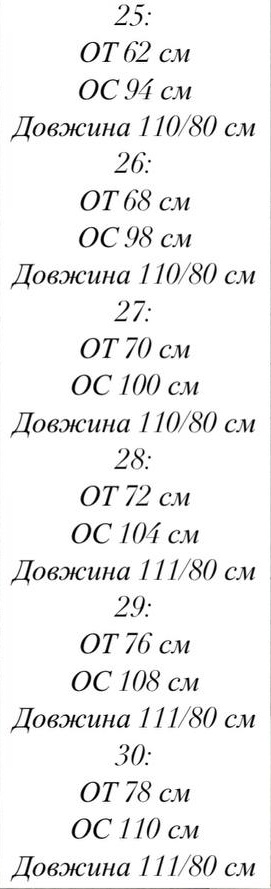 | EU | UA | Груди | Талія | Стегна | |