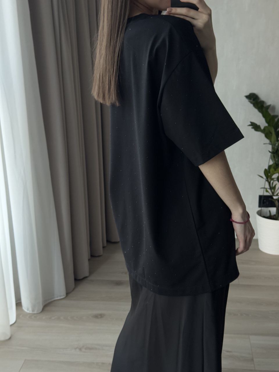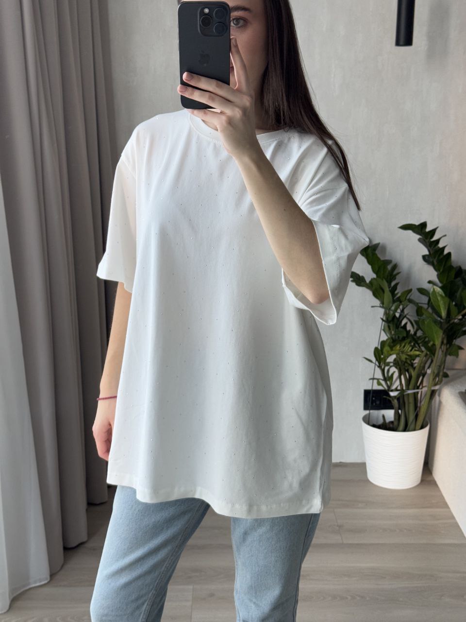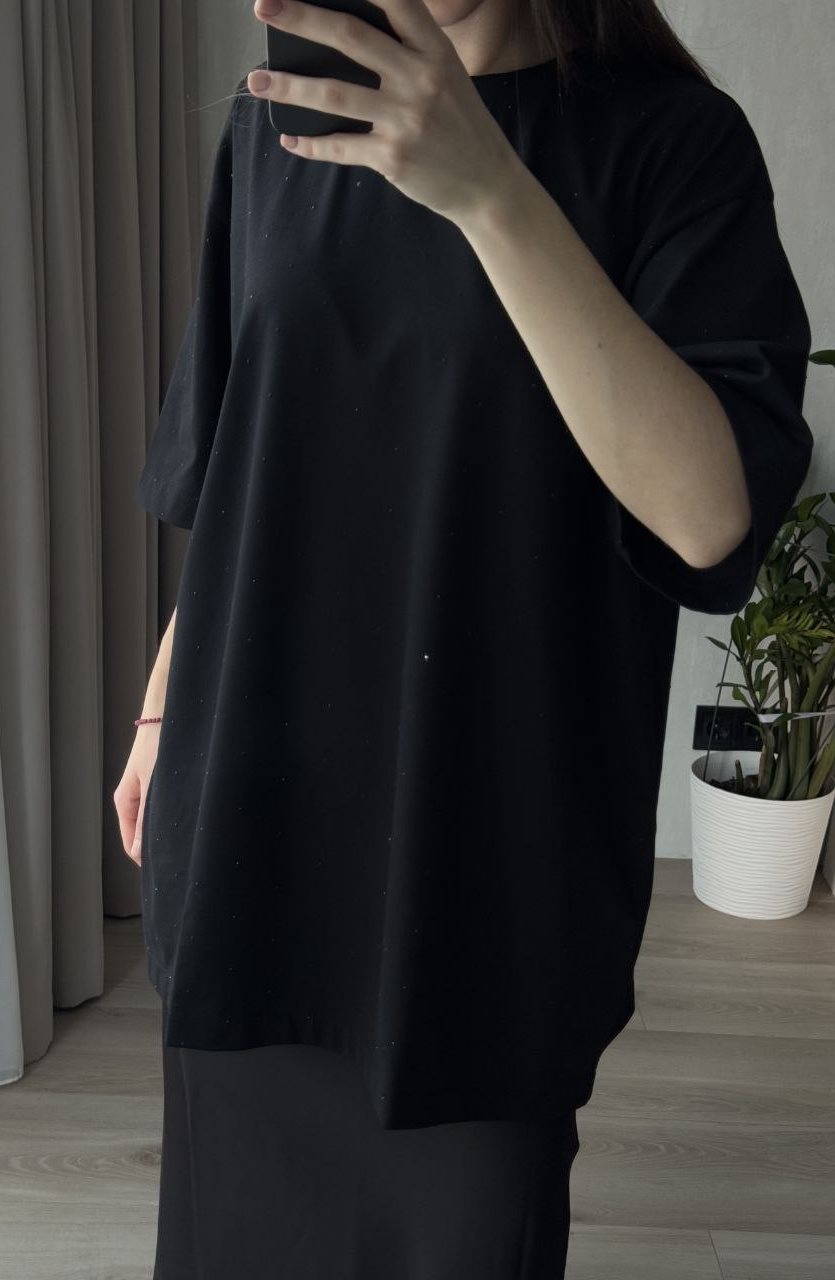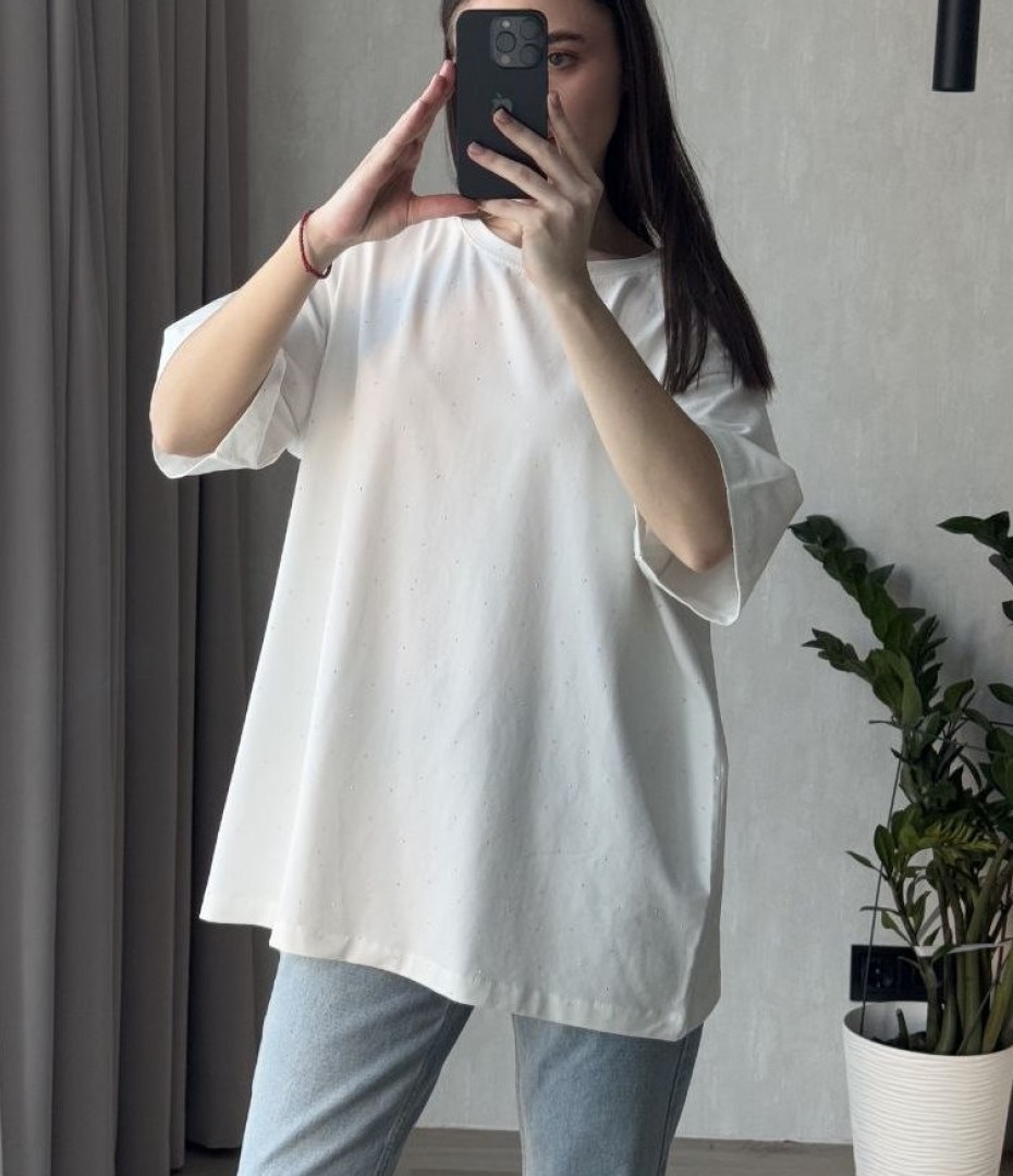 - Футболка вільного крою зі стразами