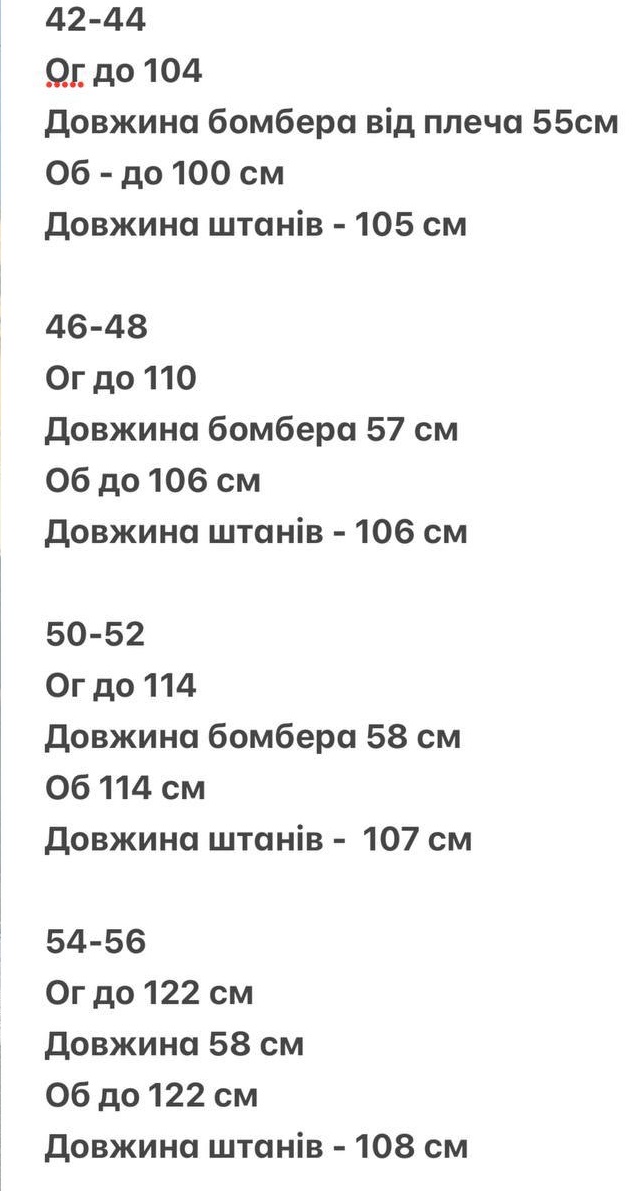 - Розміри: 42-44, 46-48, 50-52, 54-56